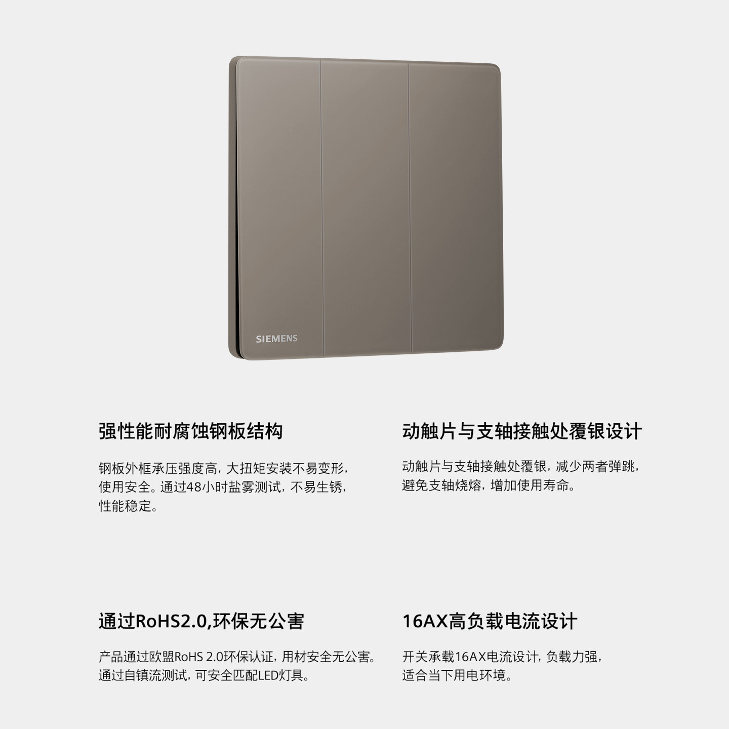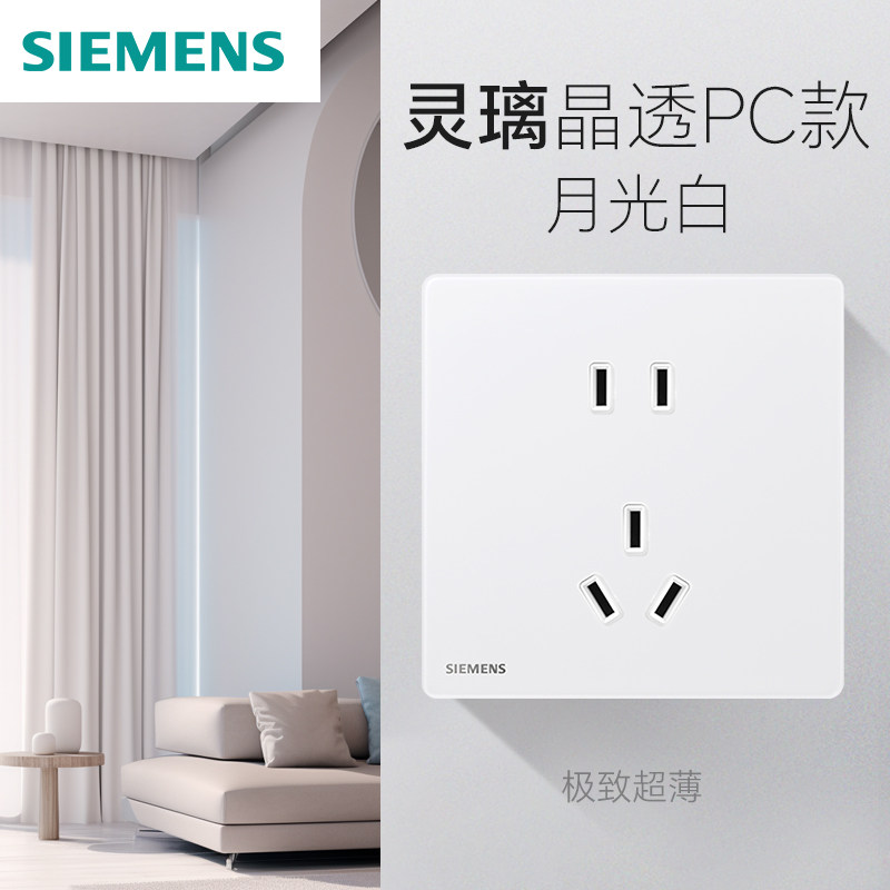 西门子开关插座灵璃PC月光白无框超薄新款错位五孔二三插usb一开
