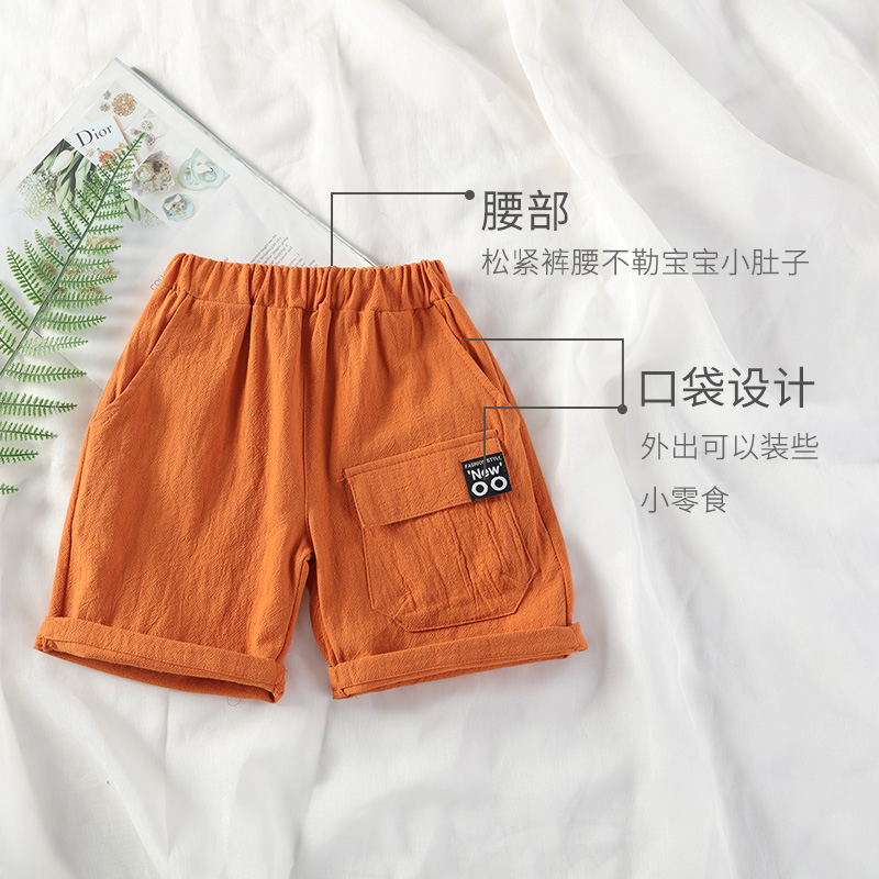 依贝童男童短裤工装裤2025夏季薄款外穿五分裤子儿童休闲宝宝中裤