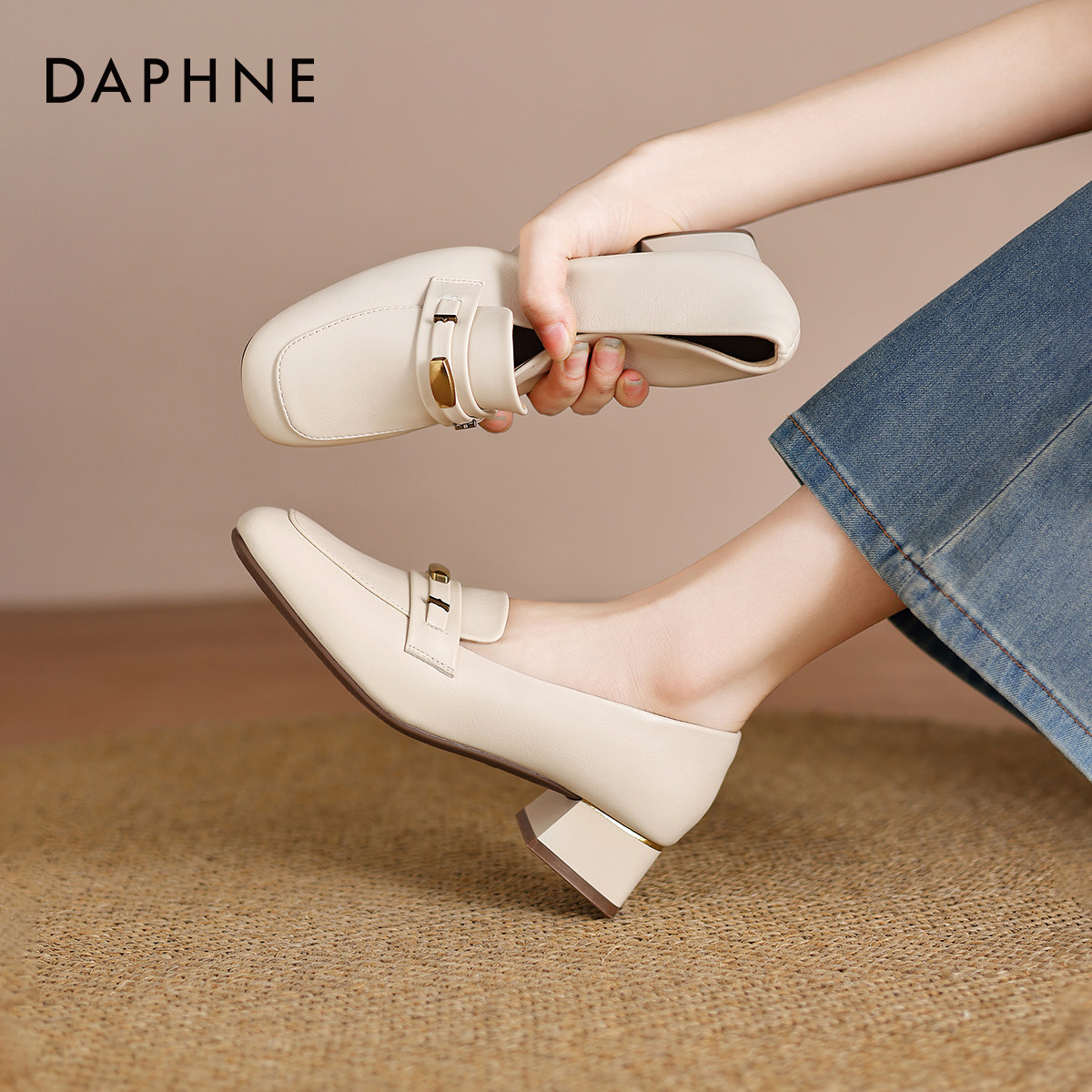达芙妮女厚底低跟通勤英伦乐福鞋