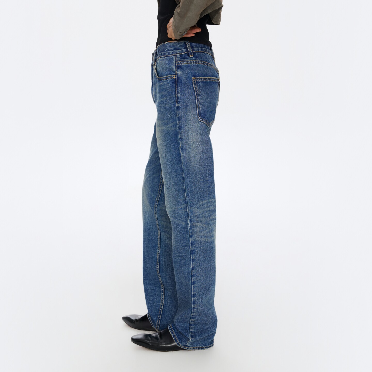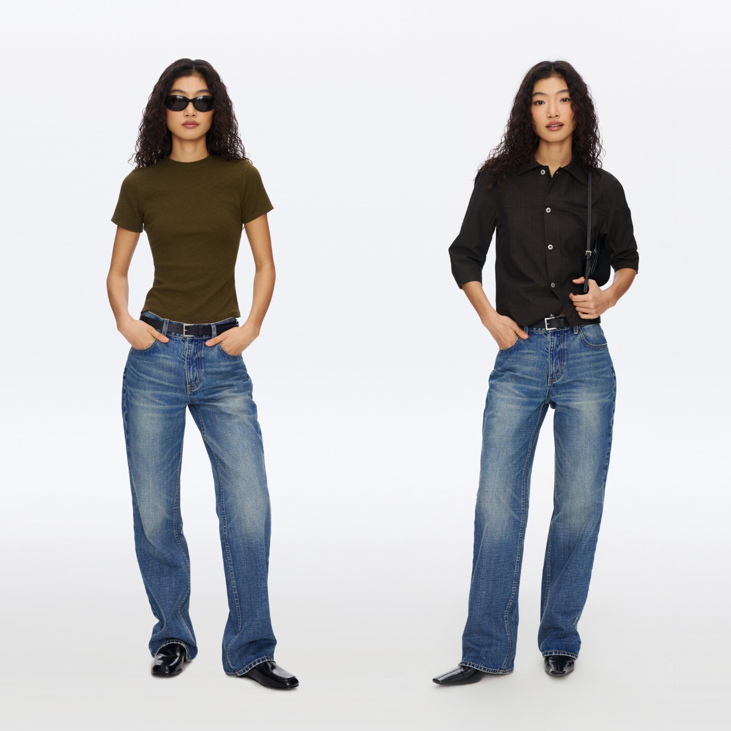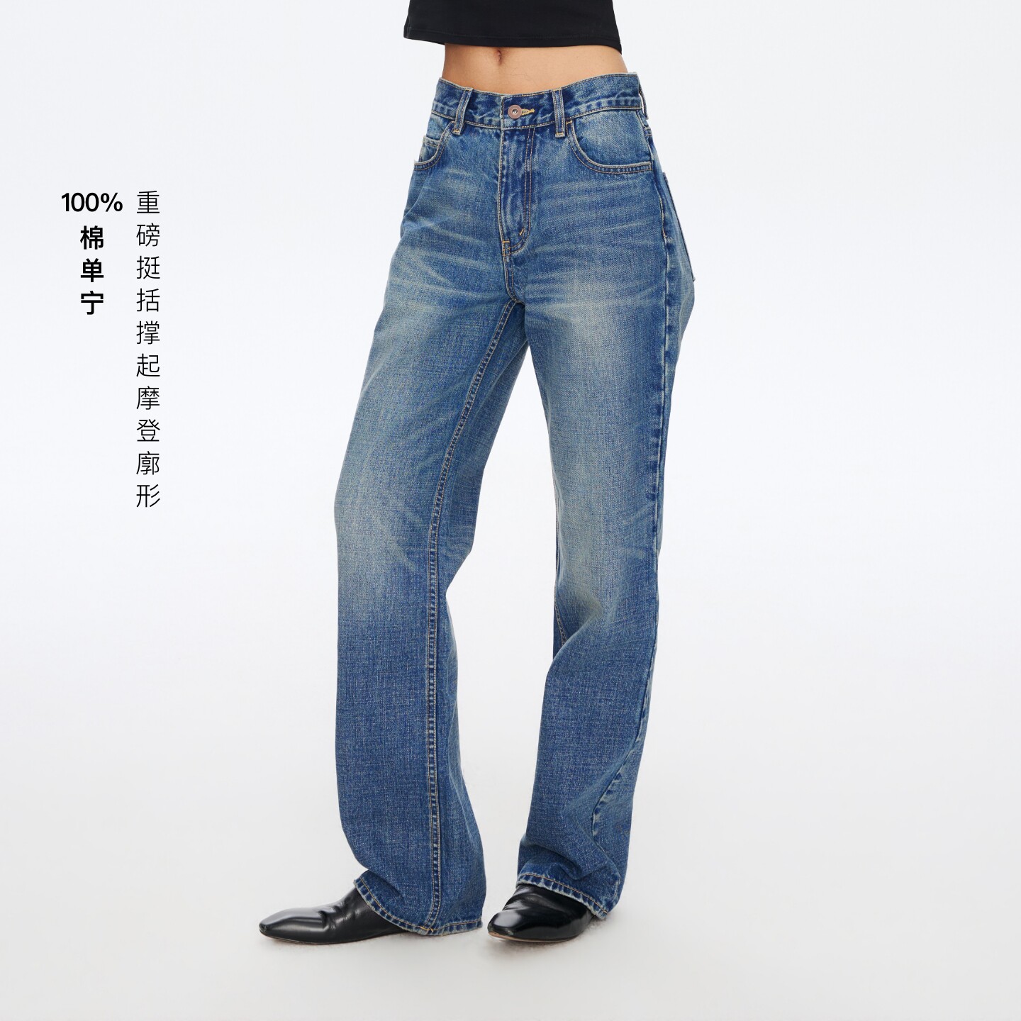 oneup美式复古水洗蓝色高腰牛仔裤女春季纯棉宽松直筒裤休闲长裤