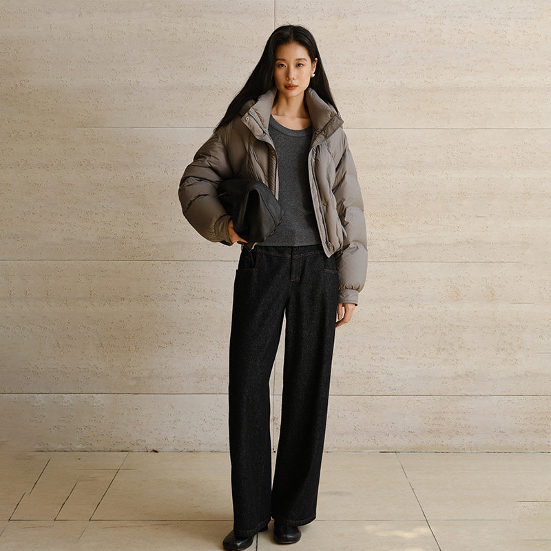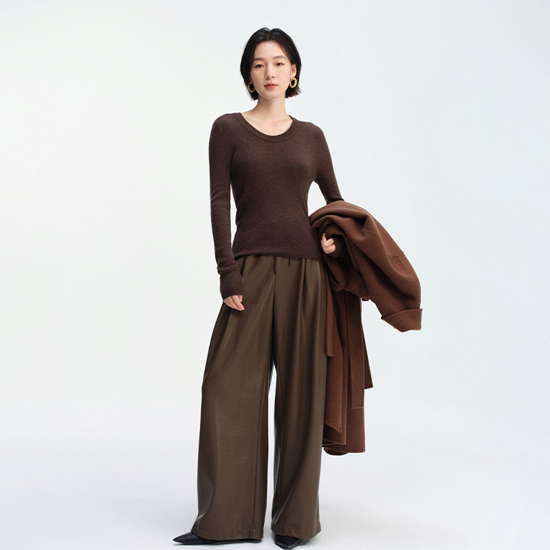 早春圆领套头羊毛混纺女毛衣