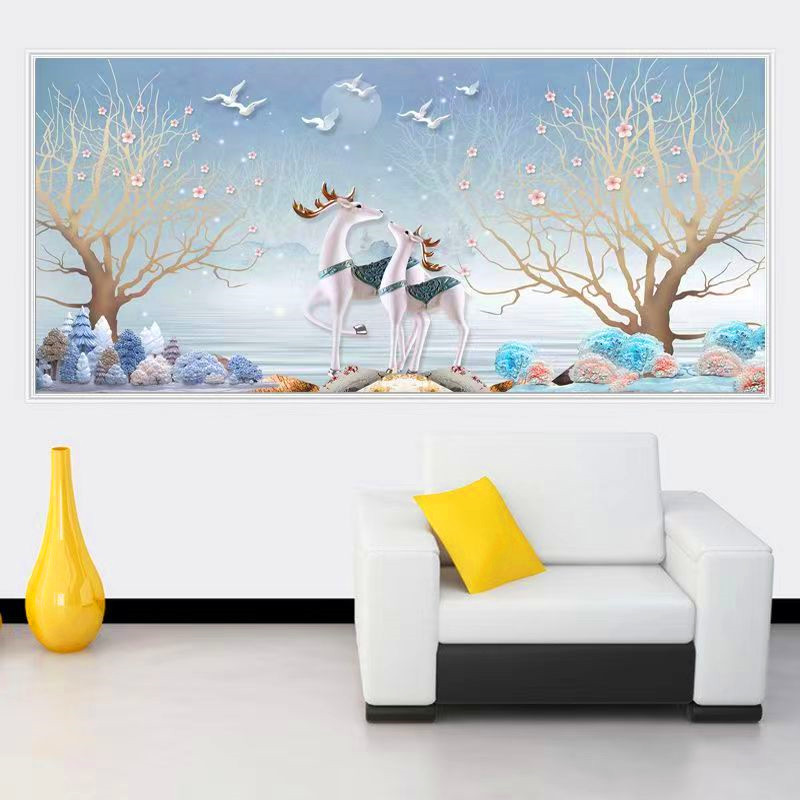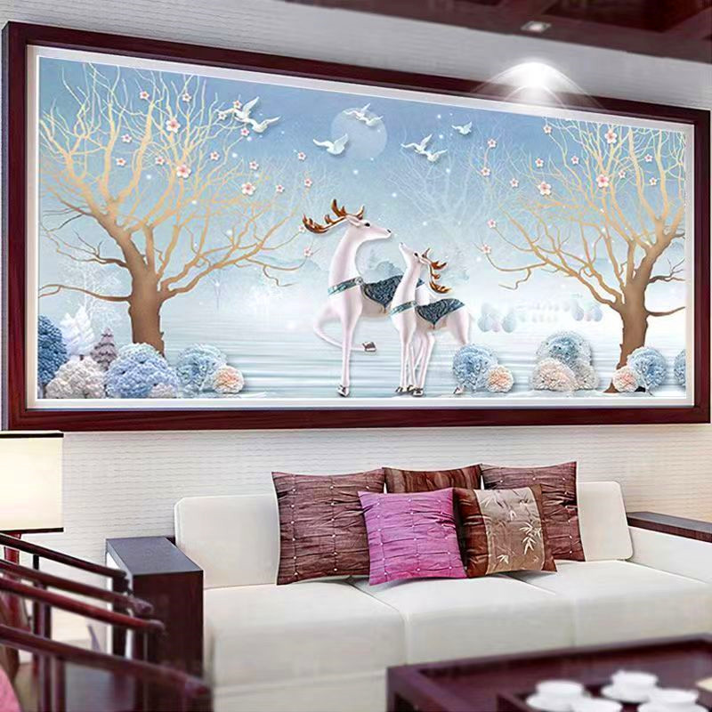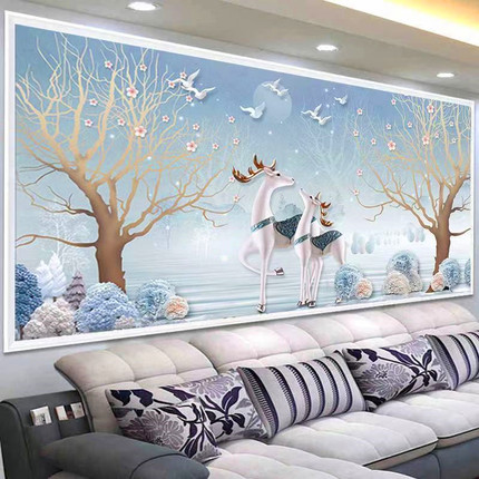 全珠绣十字绣欧式客厅穿珠子绣满绣麋鹿彩珠风景圆珠丝线简约串珠