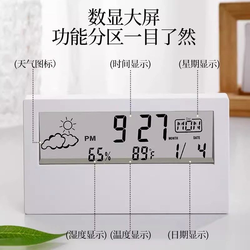 温湿度计智能天气电子钟表桌面时钟万年历台式透明学生用小闹钟
