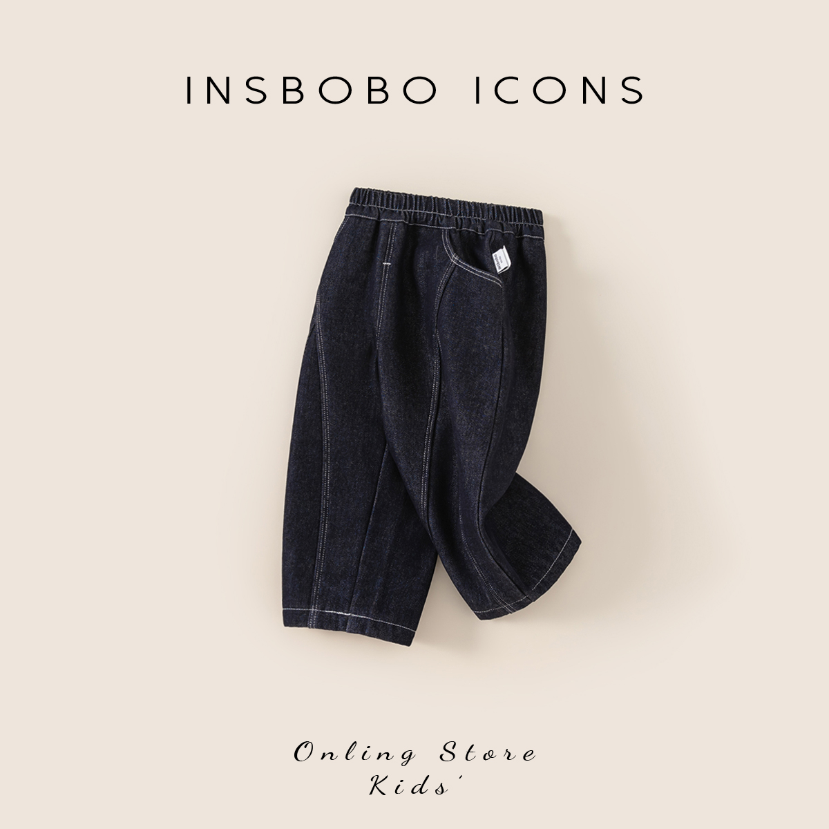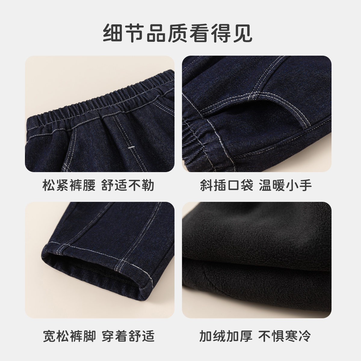 INSbobo男童裤子2025冬季新款加绒宝宝牛仔裤男孩洋气保暖冬装潮