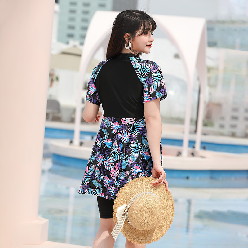 大码游泳衣女保守分体胖mm200斤五分裤遮肚显瘦加肥裙式泳装300斤
