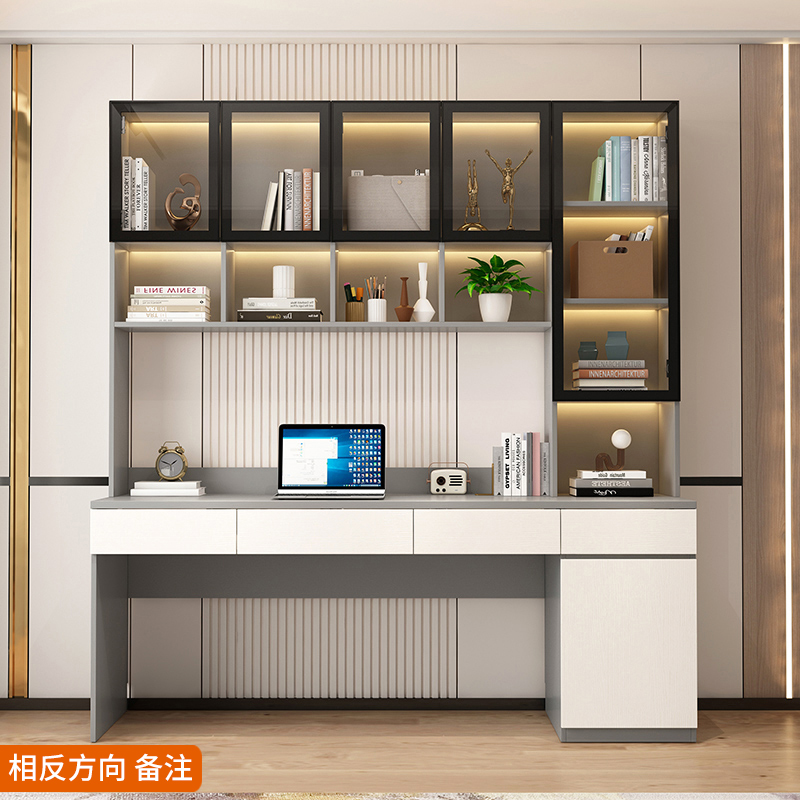 双人书桌书架组合轻奢电脑桌书房办公桌写字台式家用书柜学习桌子