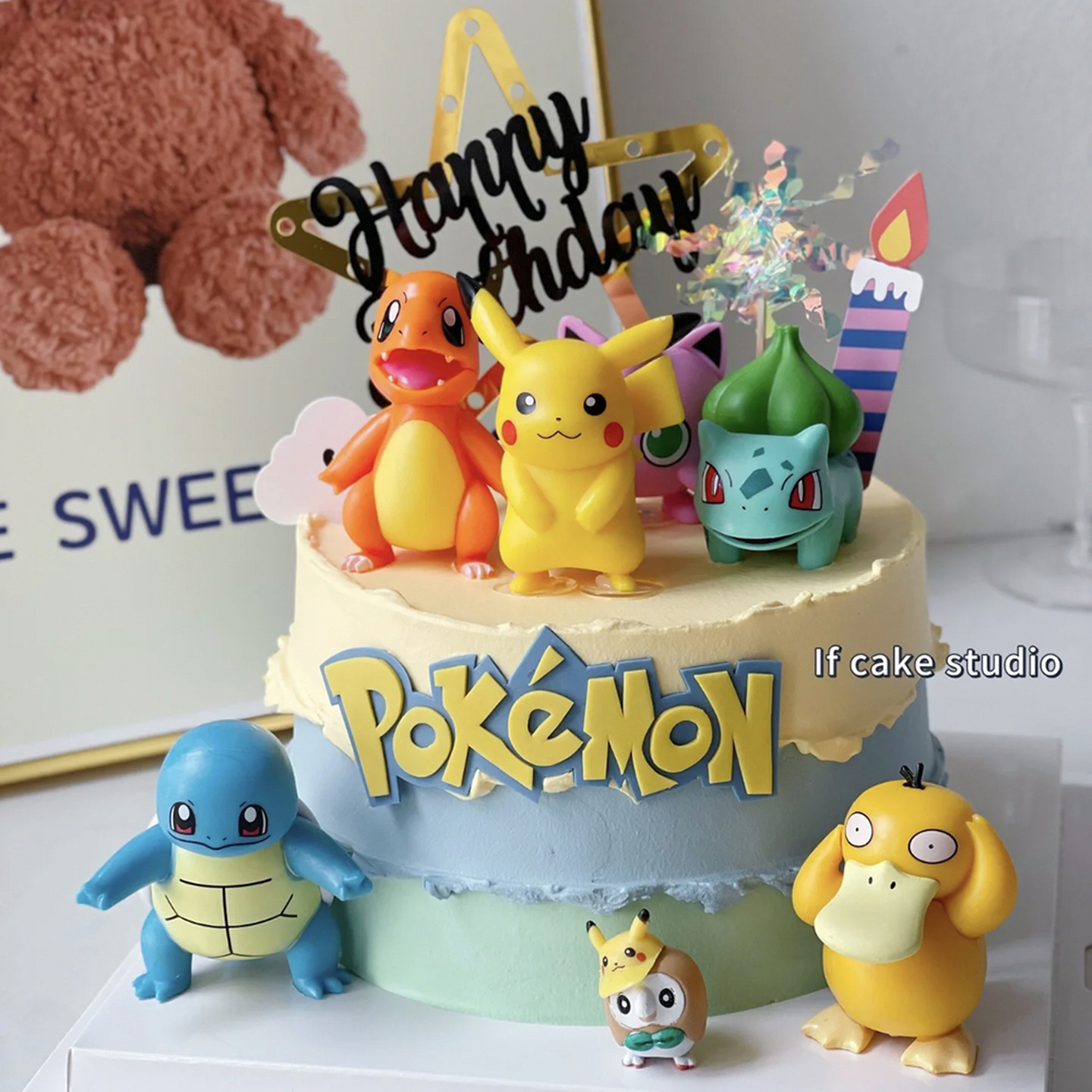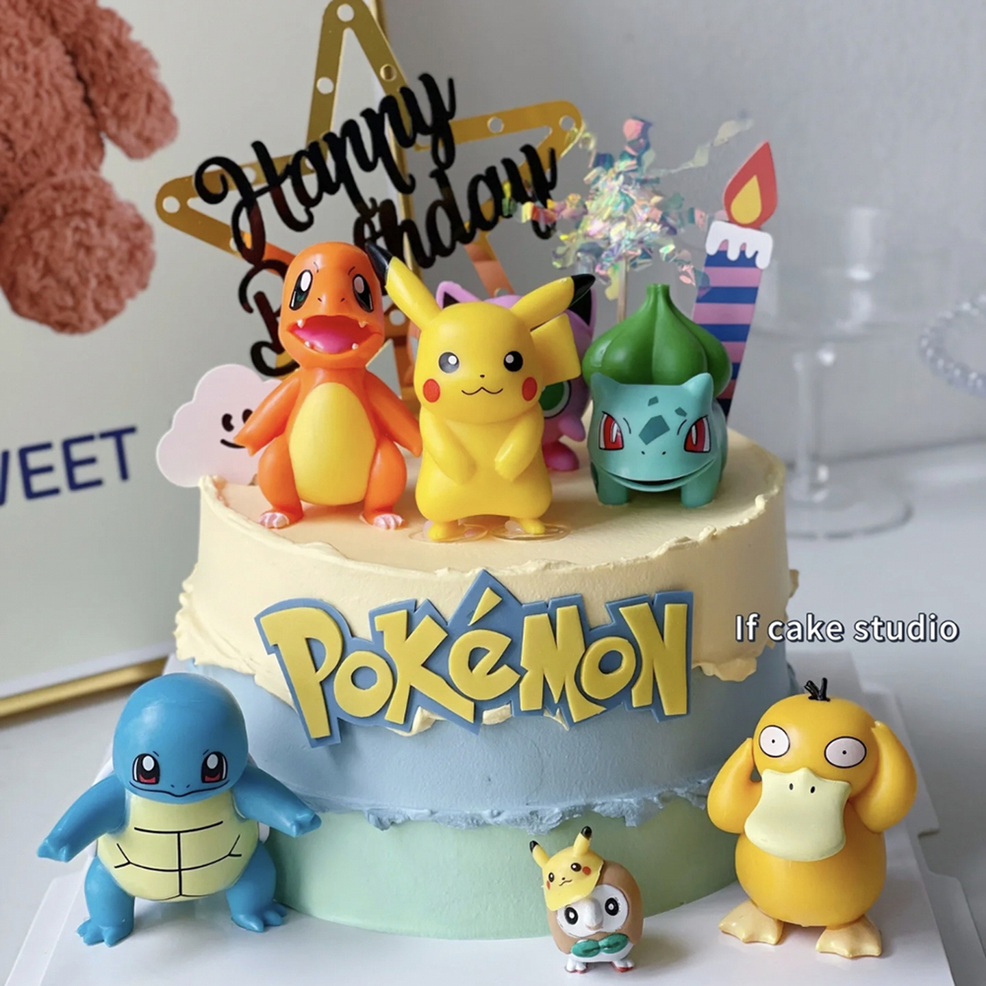 网红烘焙蛋糕装饰摆件皮卡丘蒜头蓝龟卡通水晶球玻璃罩生日插件