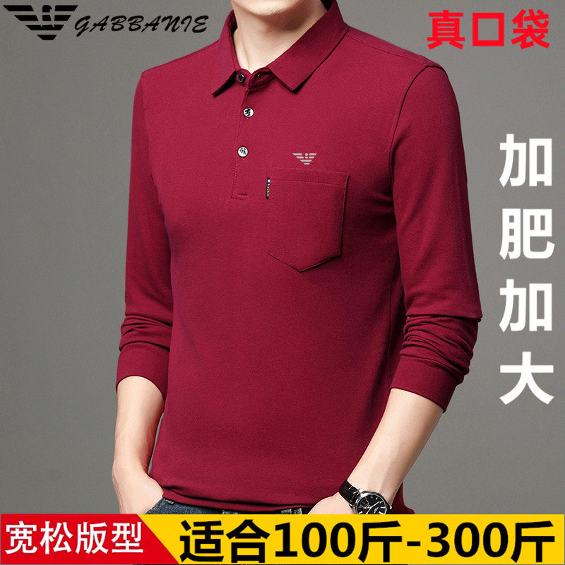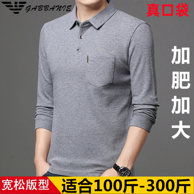 GABBANIE大码男士翻领长袖t恤胖子薄款纯棉肥佬加肥加大POLO衫