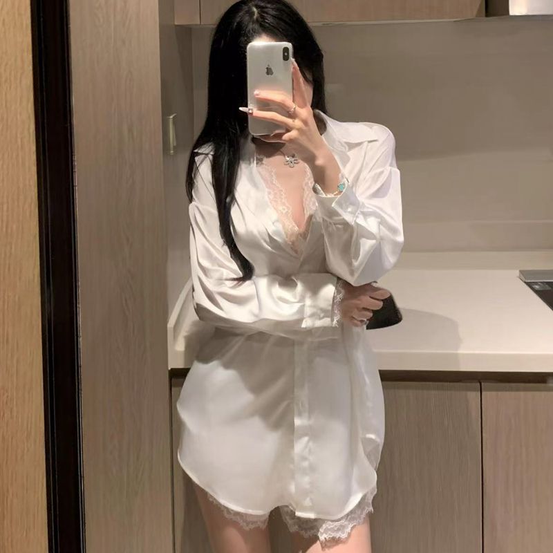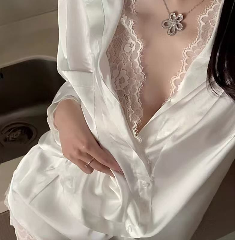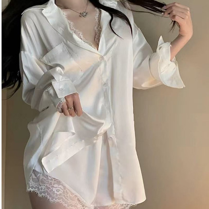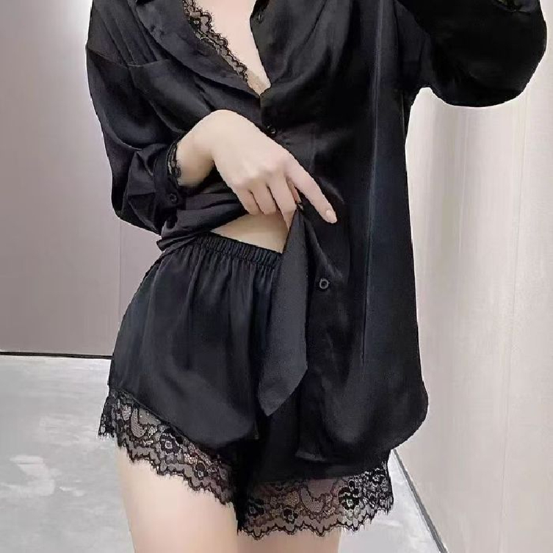 夏季冰雪丝新款短袖短裤开衫性感仿真丝绸休闲时尚蕾丝两件套装女