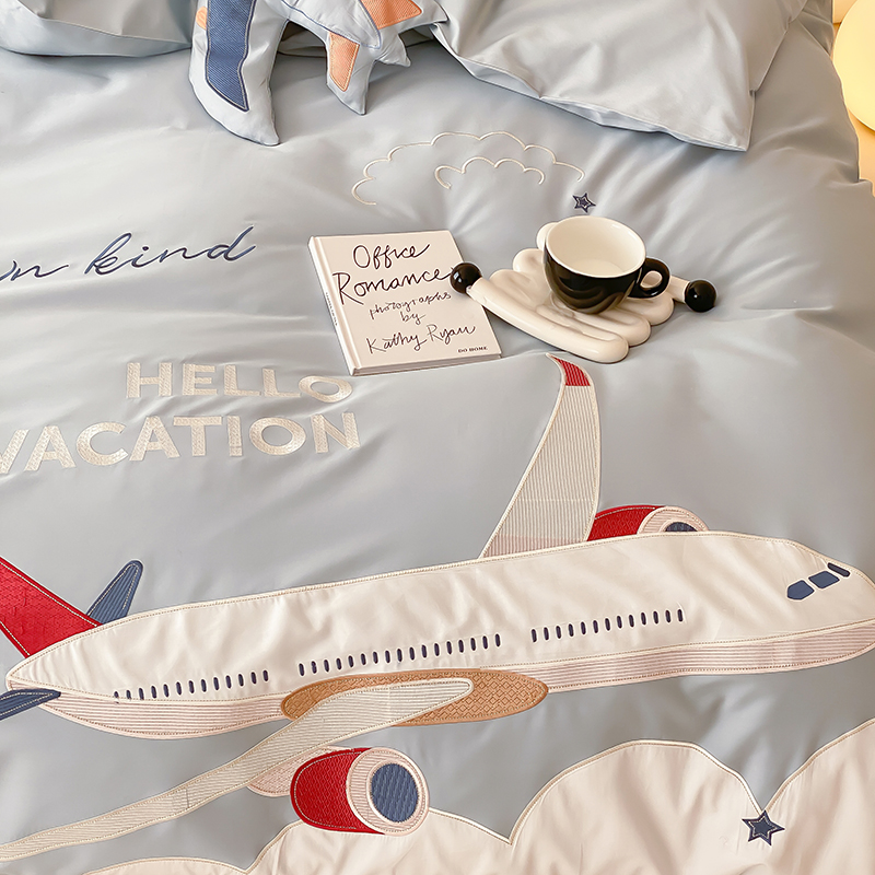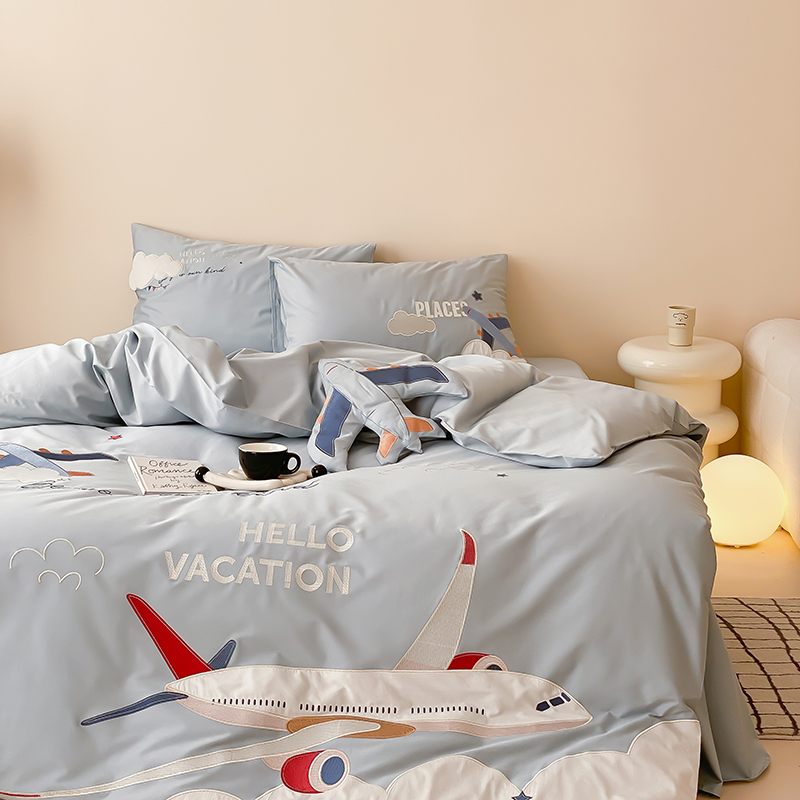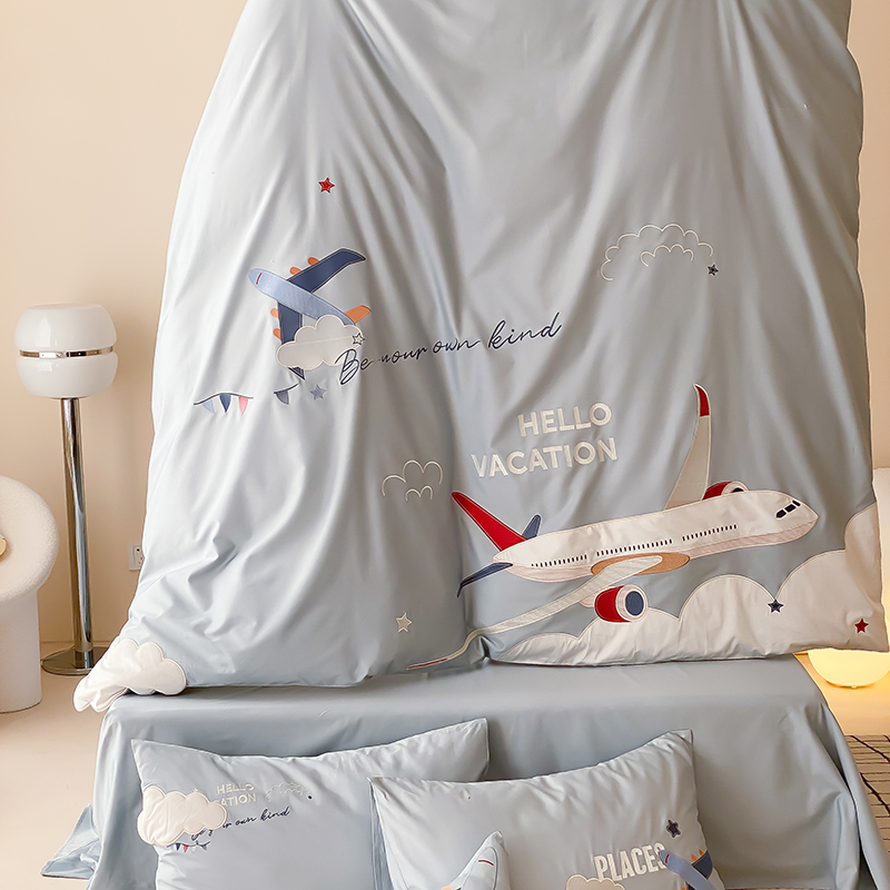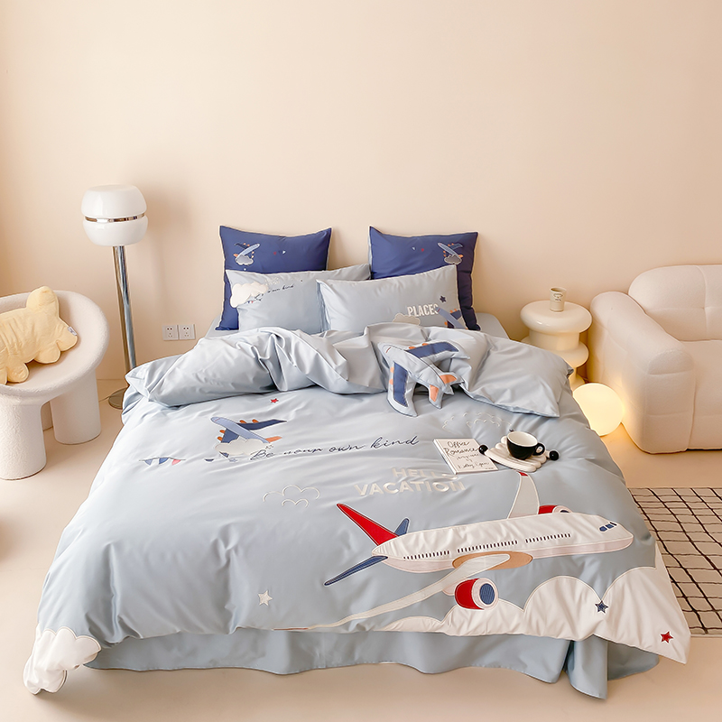卡通儿童男孩100支长绒棉纯棉四件套大飞机全棉被套1.2三件套床品