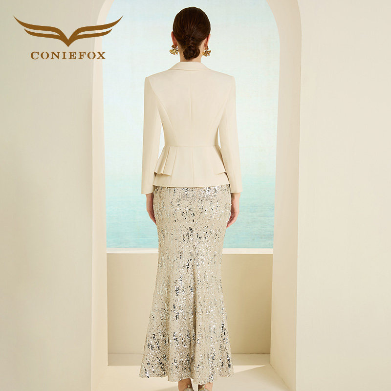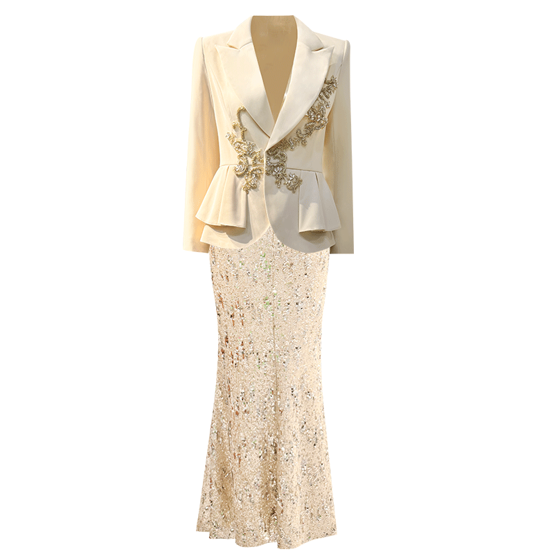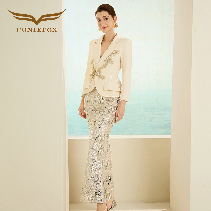创意狐巨好看的秋装一整套礼服裙高档大气长袖秋装女装主持套装裙