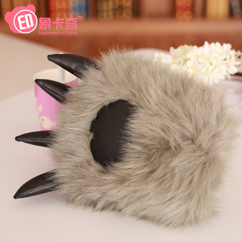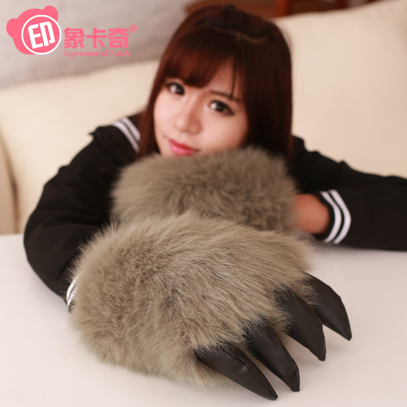 可爱暖手抱枕狼爪熊掌手套创意毛绒玩具虎爪子暖手捂插手女生冬季