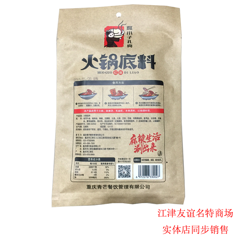 重庆江津憨小子孔亮麻辣牛油火锅底料400g四川正宗麻辣烫调料