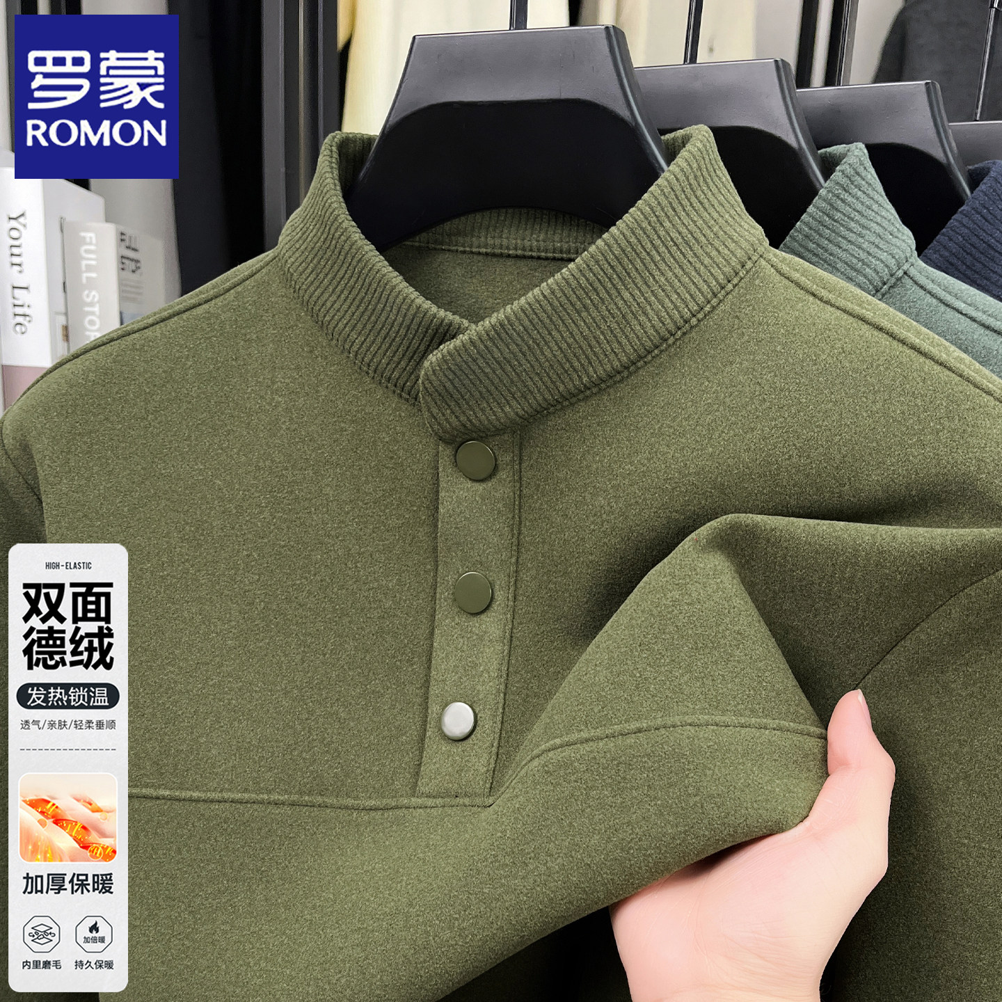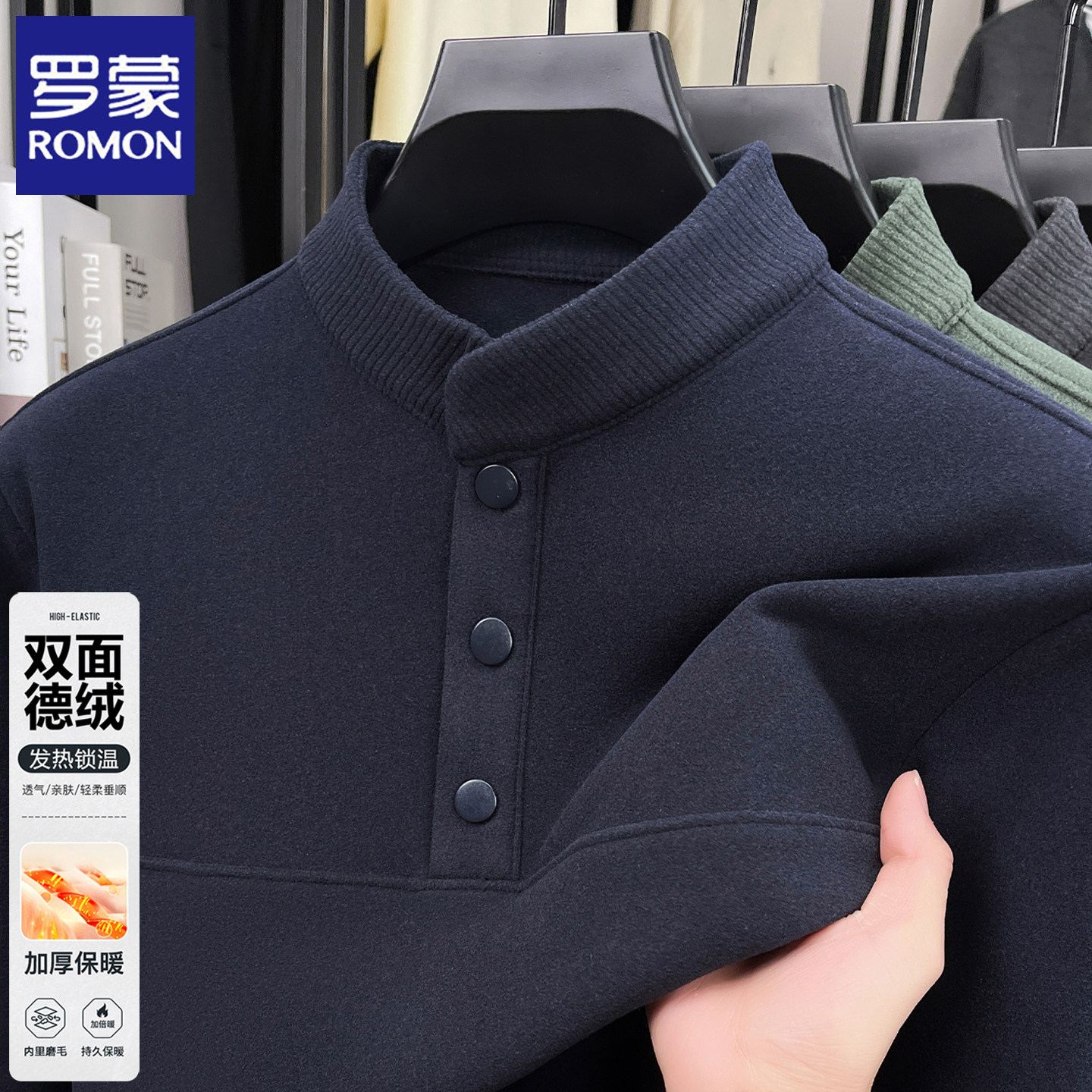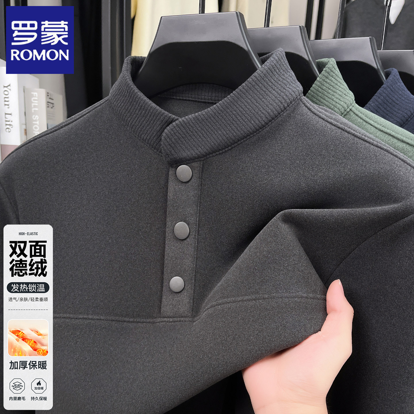 罗蒙秋冬季男士长袖T恤半高领双面德绒打底衫2025新款保暖上衣服
