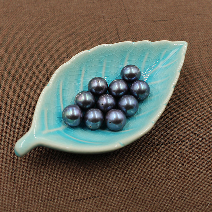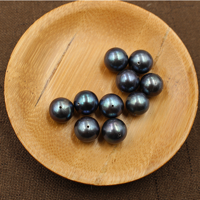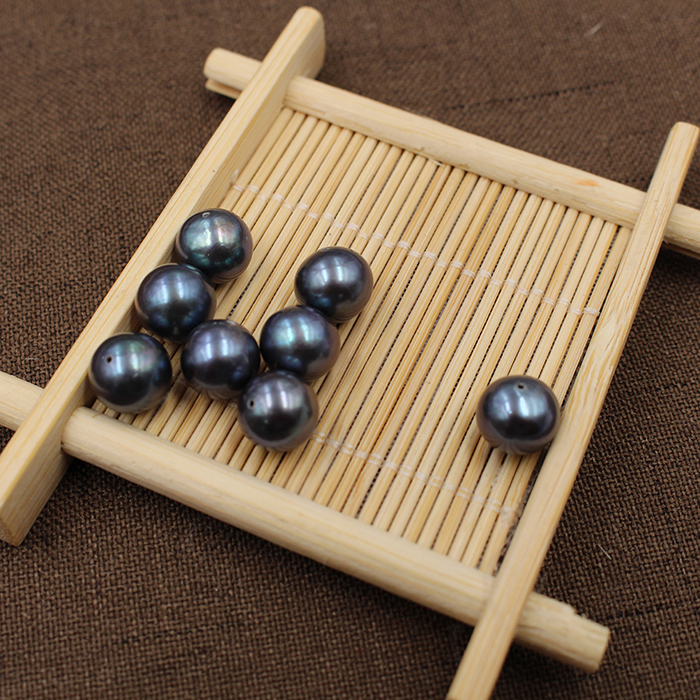 黑珍珠6-12mm 天然淡水正圆无暇裸珠散珠全孔DIY珠宝饰品染色配珠
