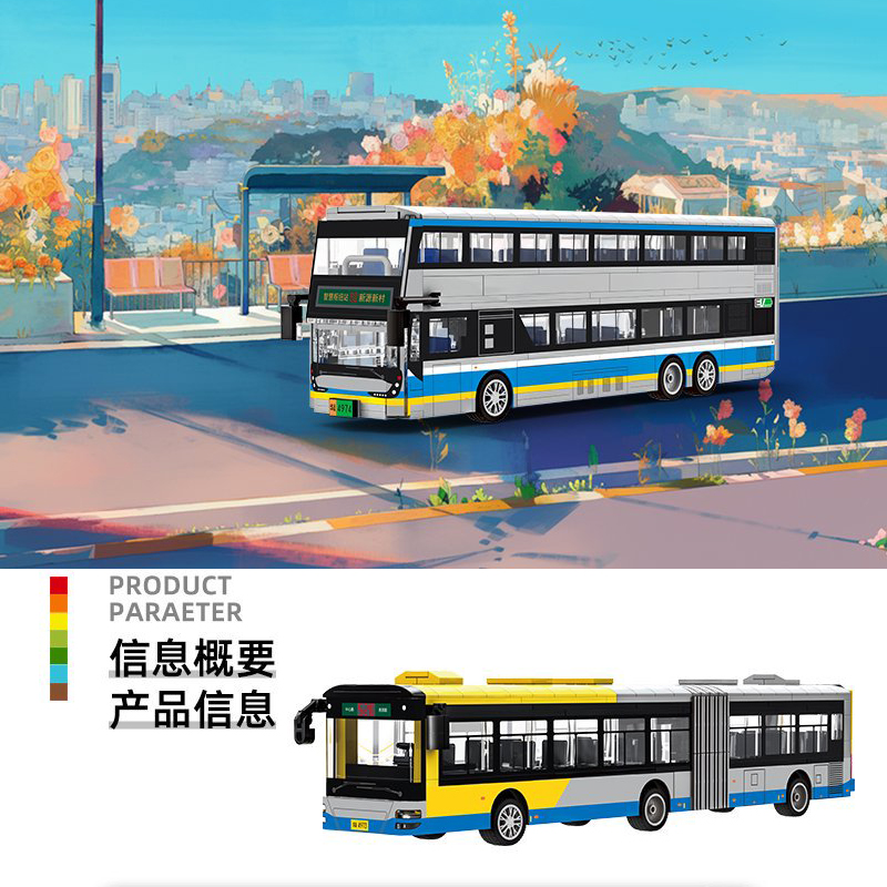 超级英雄联盟城市场景大型双层城际巴士益智拼装汽车玩具积木模型