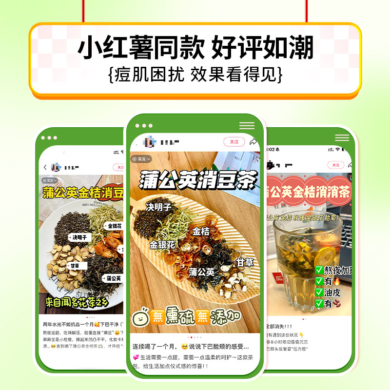 九芝堂金银花蒲公英金桔菊花茶去火清解热毒痘泡水花茶女养生茶包
