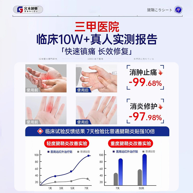 腱鞘炎贴膏手腕大拇指手指腱鞘膏贴正品特效关节疼痛热暖敷贴专用