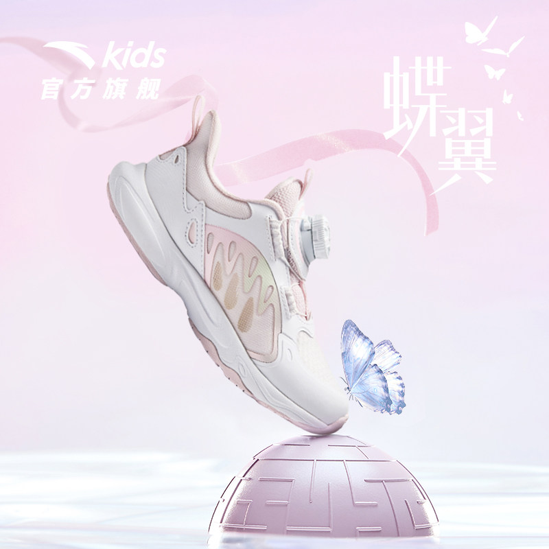 蝶翼安踏儿童女童休闲鞋小童春季专业运动鞋透气网面女宝休闲童鞋