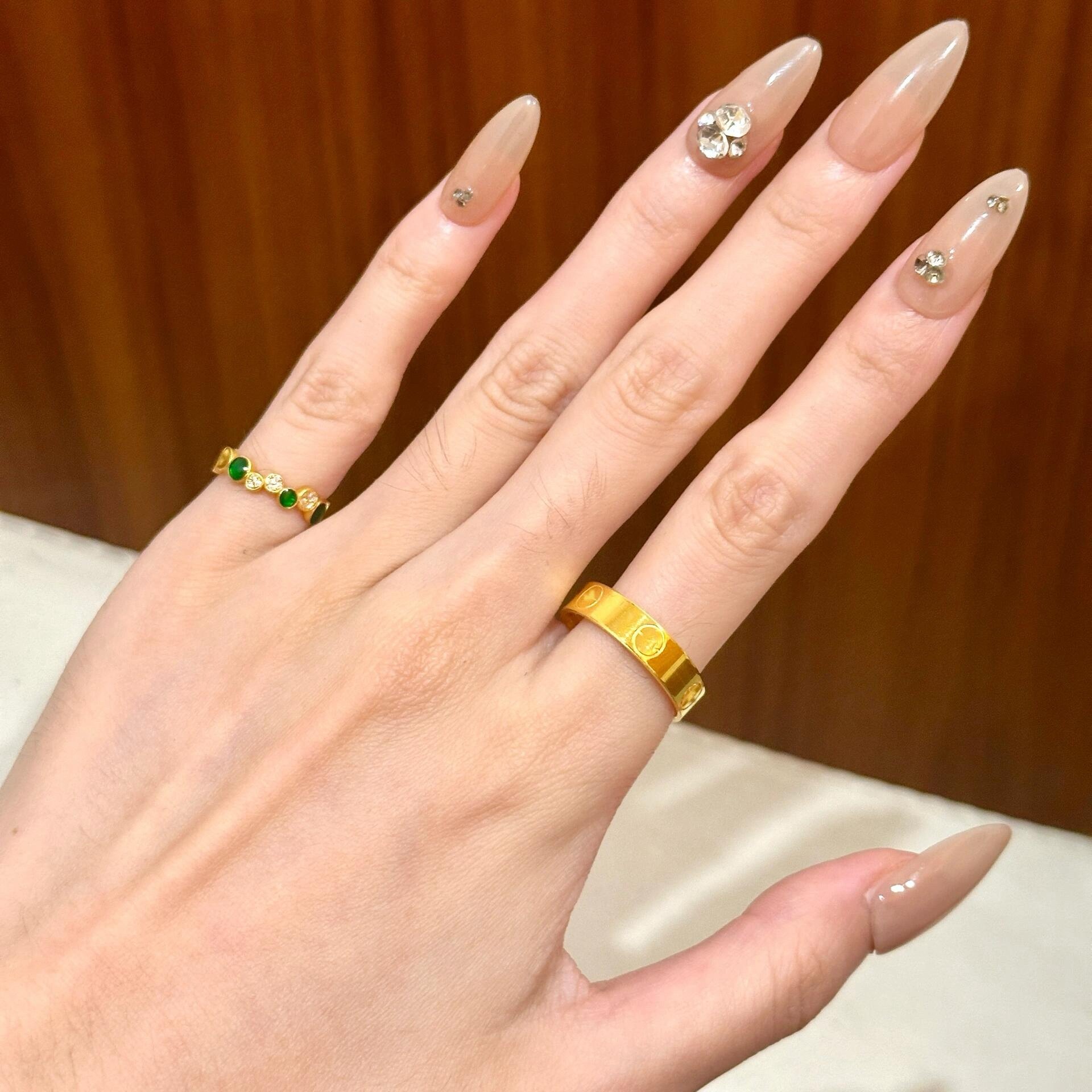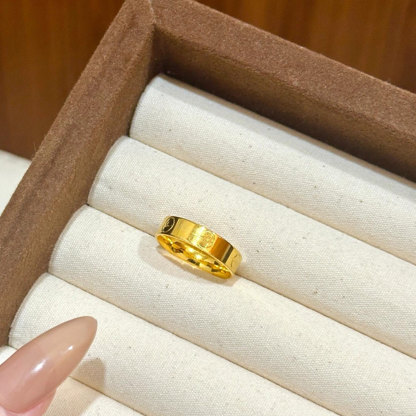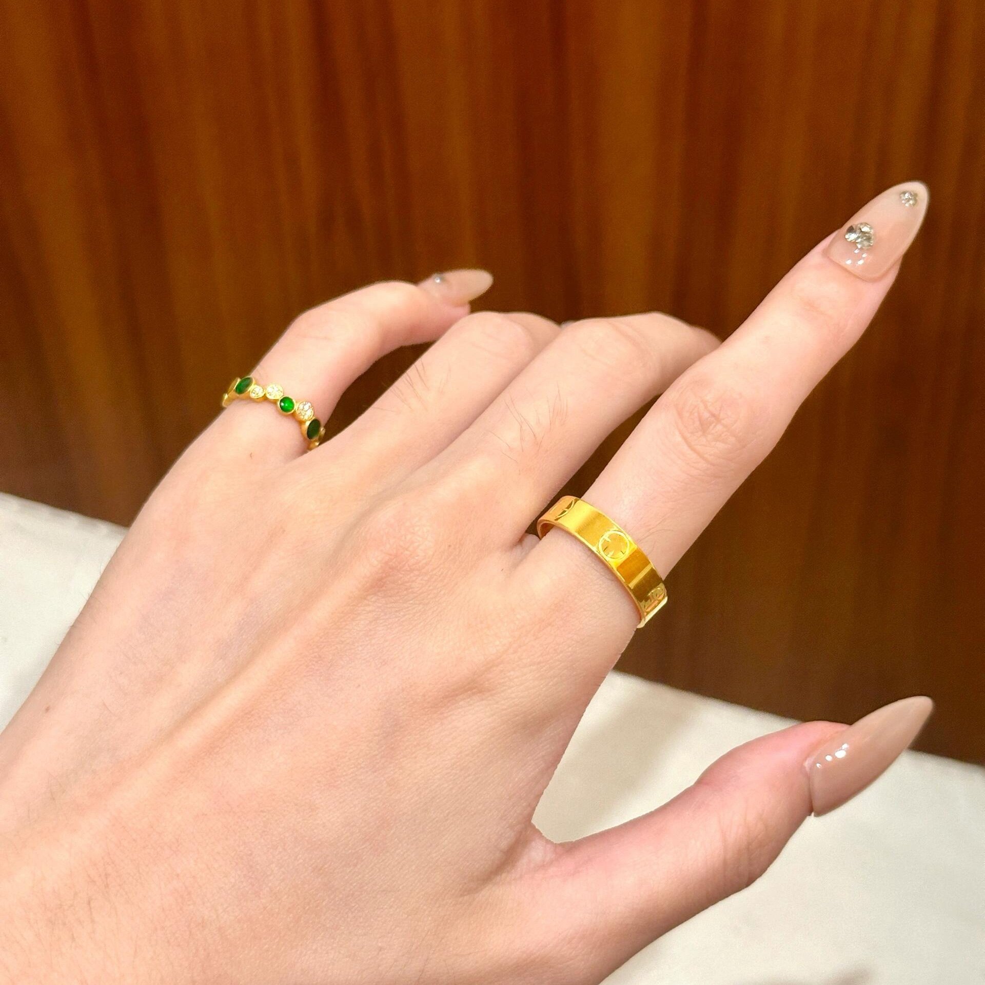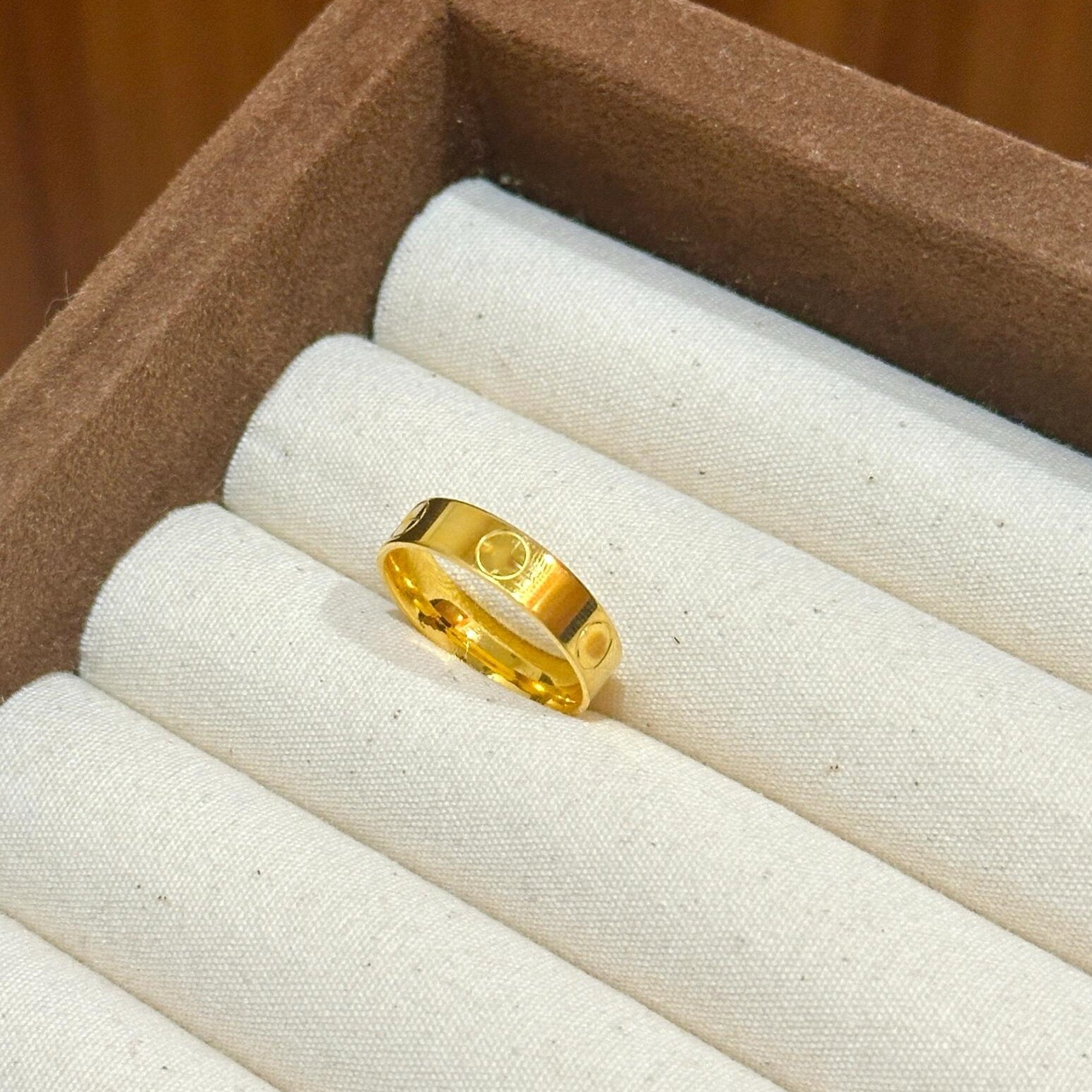 仿真黄金戒指男女款简约经典轻奢高级感4m5m一字素圈情侣对戒婚戒