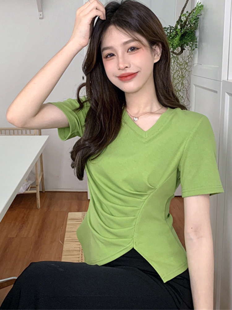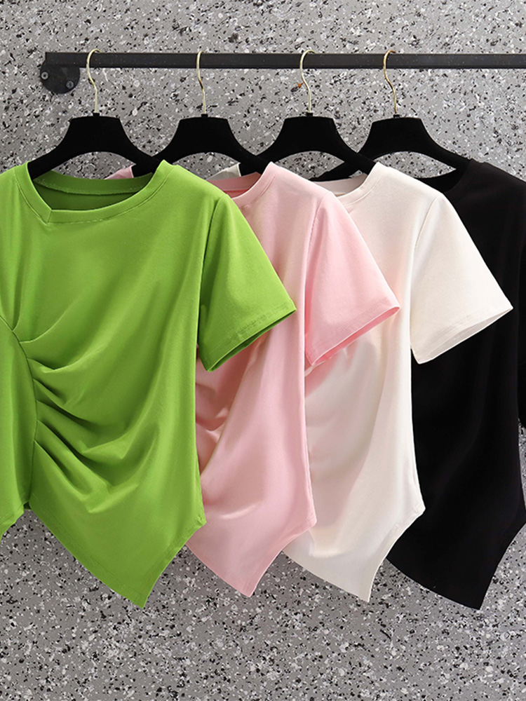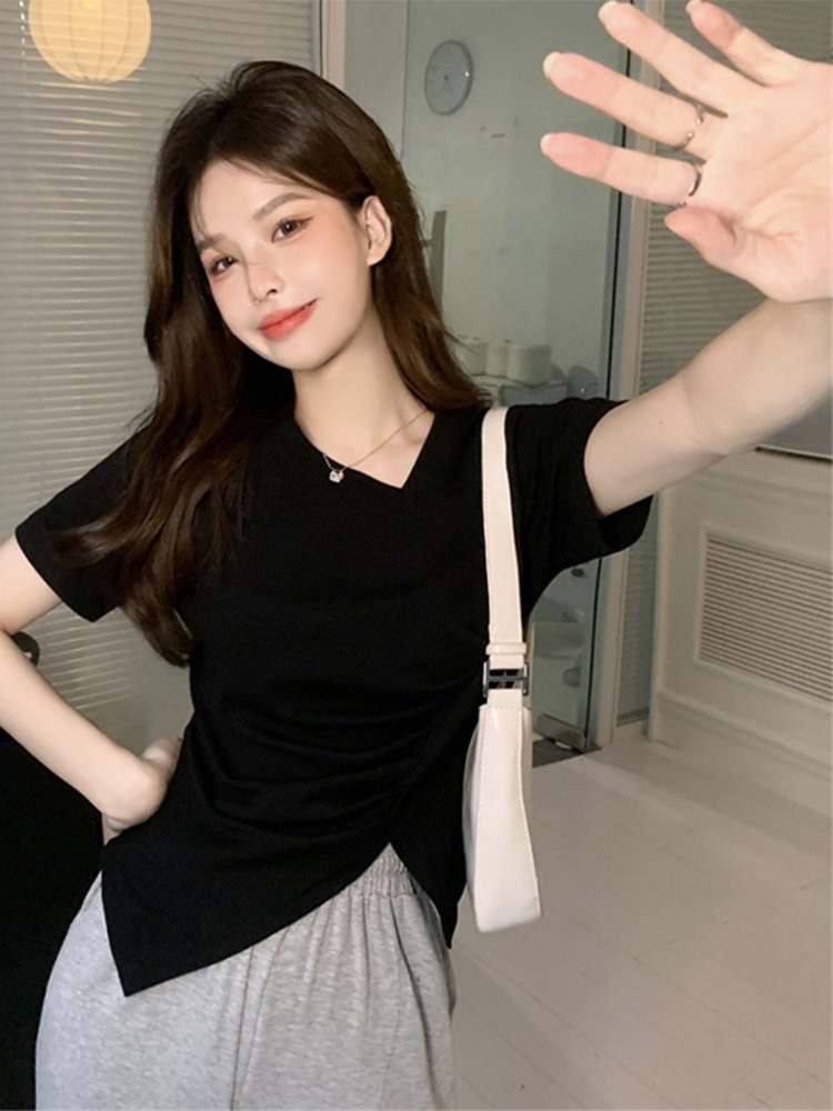 设计感甜辣不规则短袖t恤女夏季韩版小众修身显瘦正肩遮肉上衣ins
