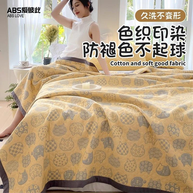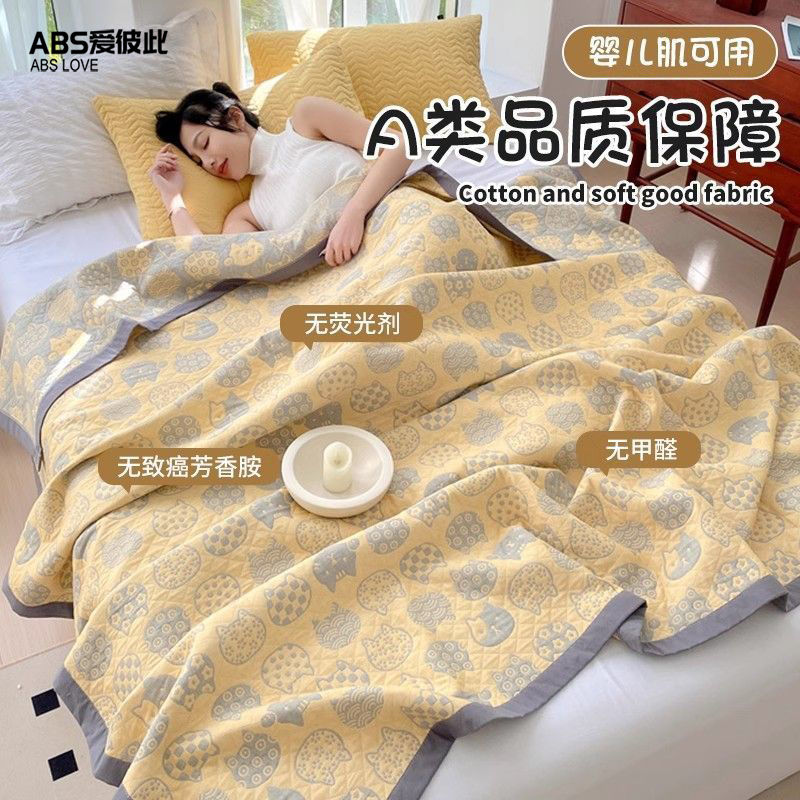ABS夏天全棉三层纱纯棉夏被办公室午休毯子夏凉被沙发盖毯披肩毯