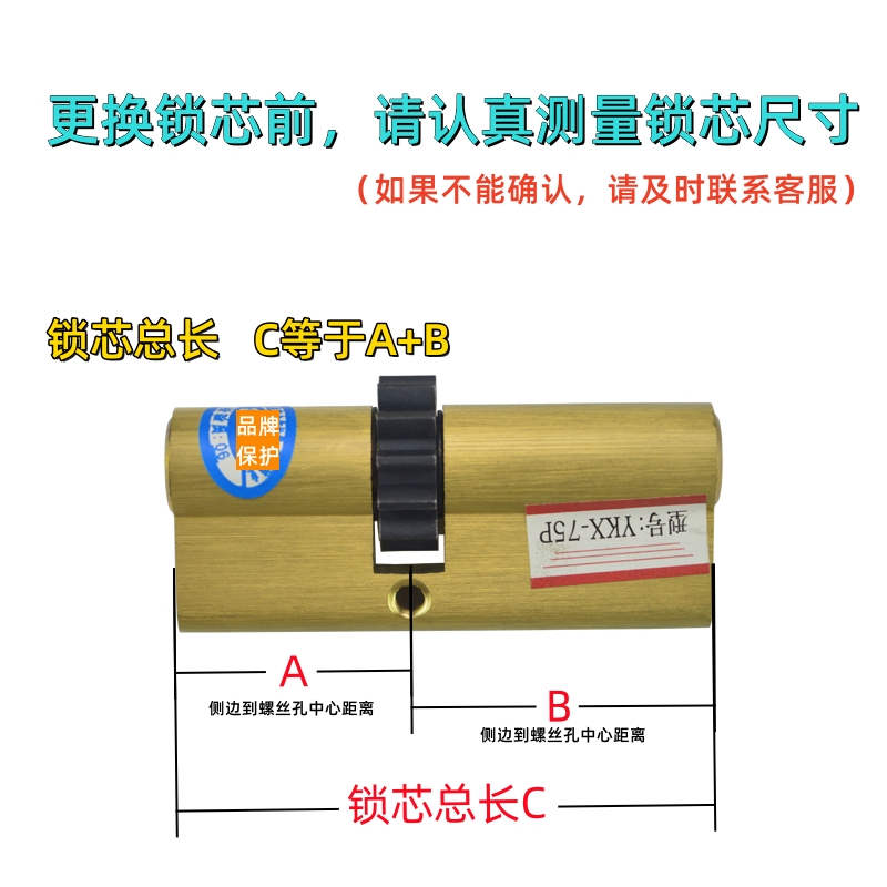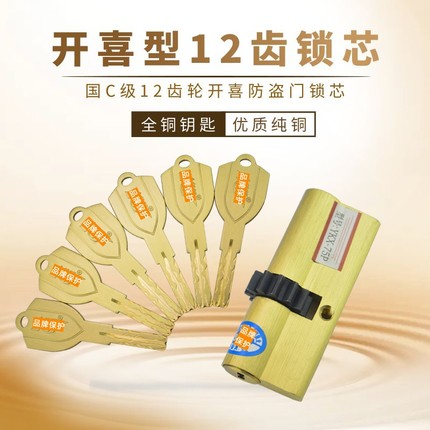 国C级开喜防盗门12齿轮锁芯 老式家用纯铜进户门入户门十二齿门锁