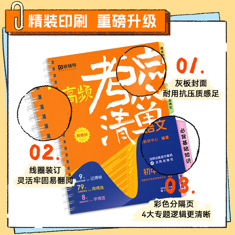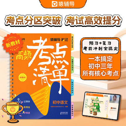 【猿辅导官方旗舰店】新教材初中秒记高频考点清单新学期规划新课标语文数学英语物理化学预习新学期同步中考真题考点考法同步教材