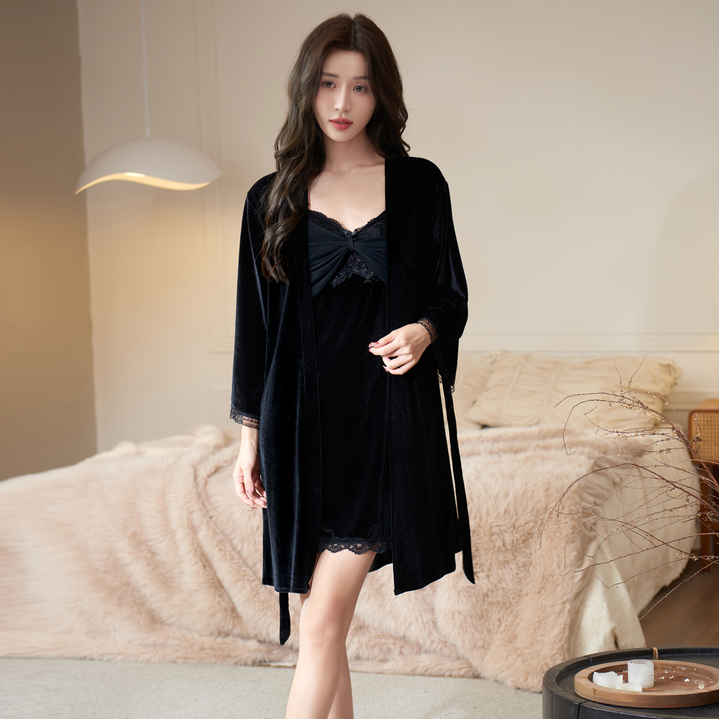 乐姿梦性感睡衣女2025年新款秋冬高级感金丝绒女吊带睡裙睡袍套装