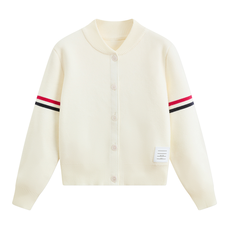 韩版tb双标针织开衫女秋冬新款立领宽松长袖毛衣短外套棒球服上衣