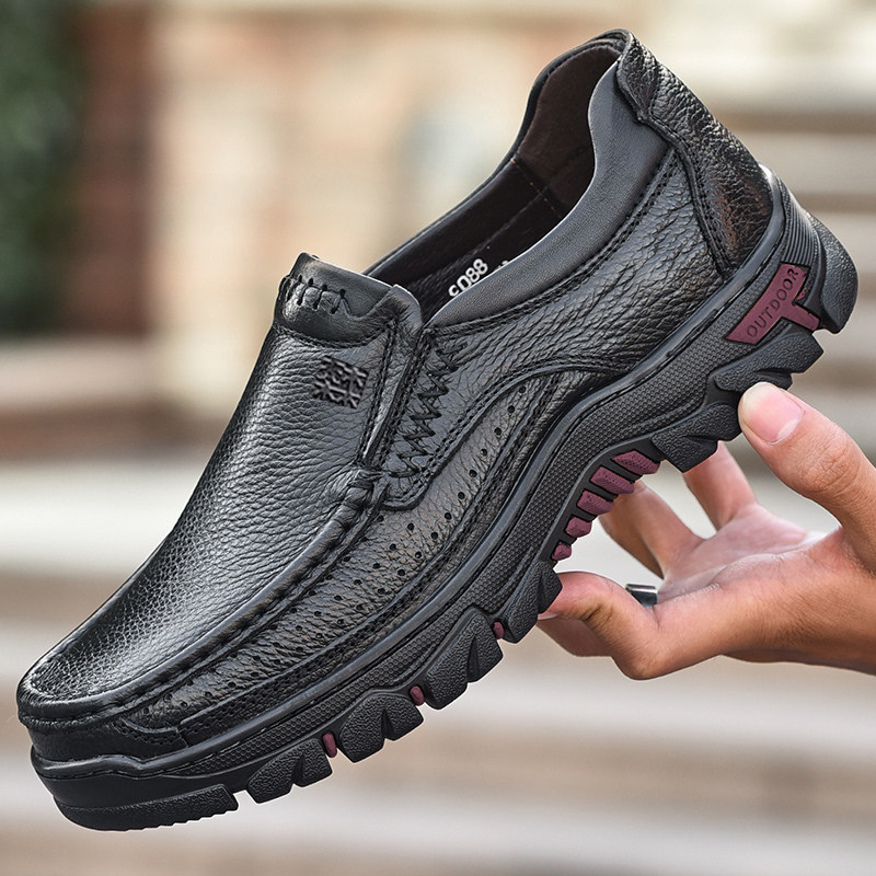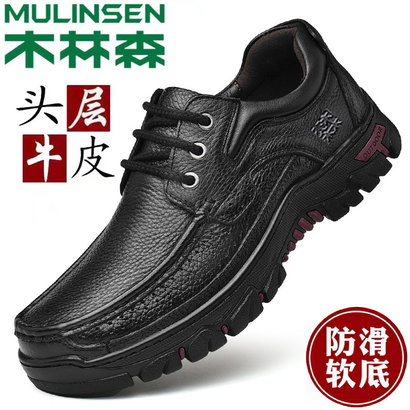木林森正品男鞋真皮软面商务休闲皮鞋户外大码防滑爸爸鞋工装鞋子