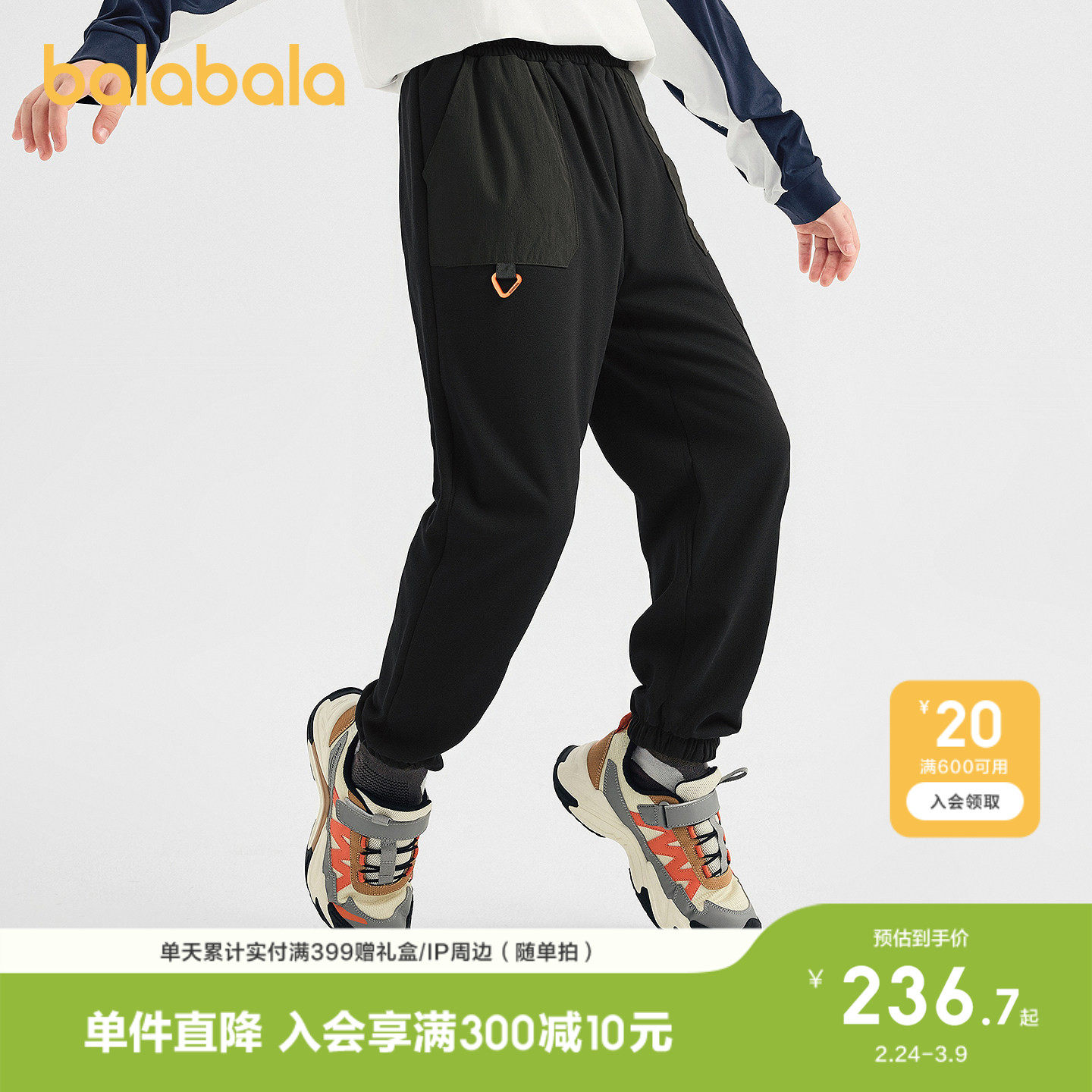 【商场同款】巴拉巴拉童装儿童裤子男童长裤2026秋冬休闲吸湿棉裤