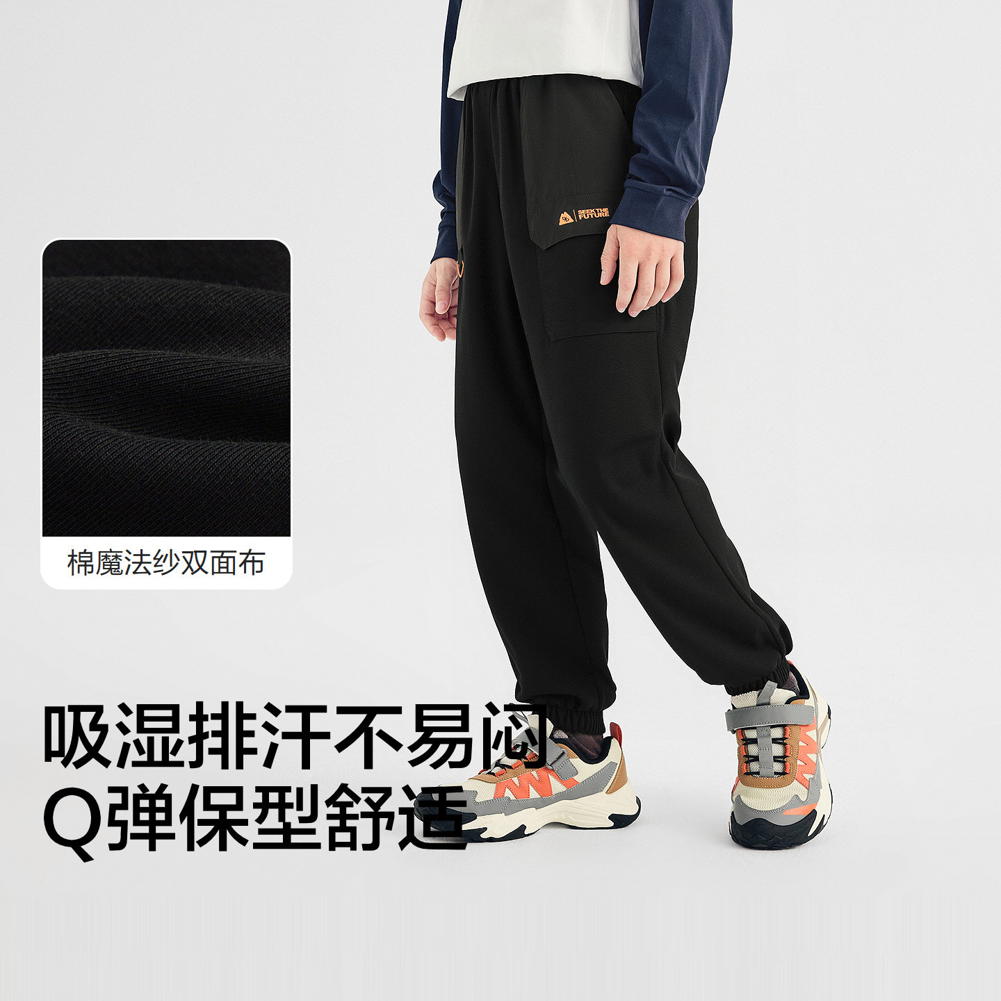 巴拉巴拉长裤男童针织棉裤拼接潮