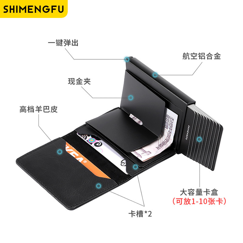 多卡位金属防盗刷钱包弹出式卡包
