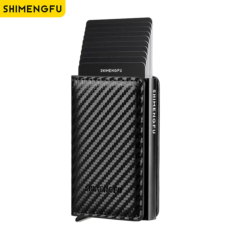 高级男生钱包短款弹卡式金属卡包RFID防盗刷多卡位证件套欧美卡盒