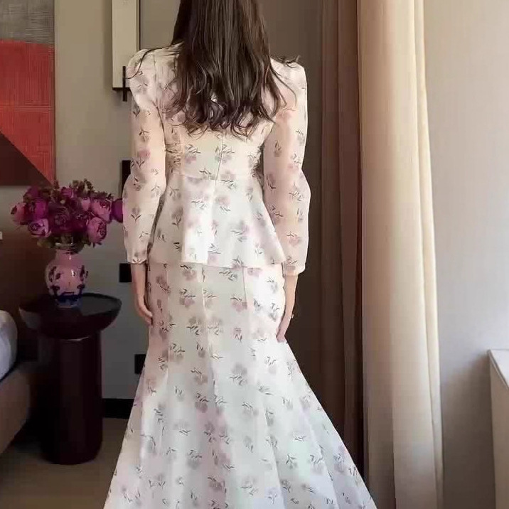 欧美亚马逊跨境2025年春季新款复古宫廷风优雅长袖长裙套装连衣裙