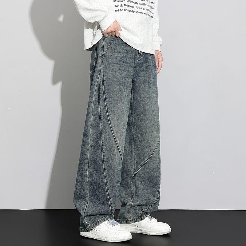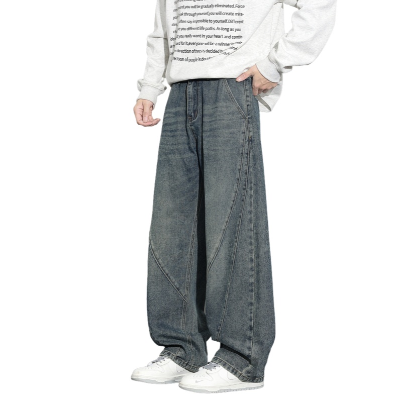 美式复古弯刀阔腿牛仔裤男款潮流宽松直筒休闲长裤子男生新款秋季