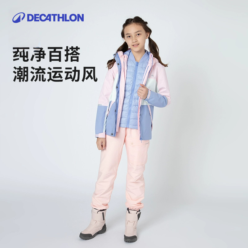【老款清仓】迪卡侬儿童三合一羽绒服男女童冬保暖外套冲锋衣KIDS