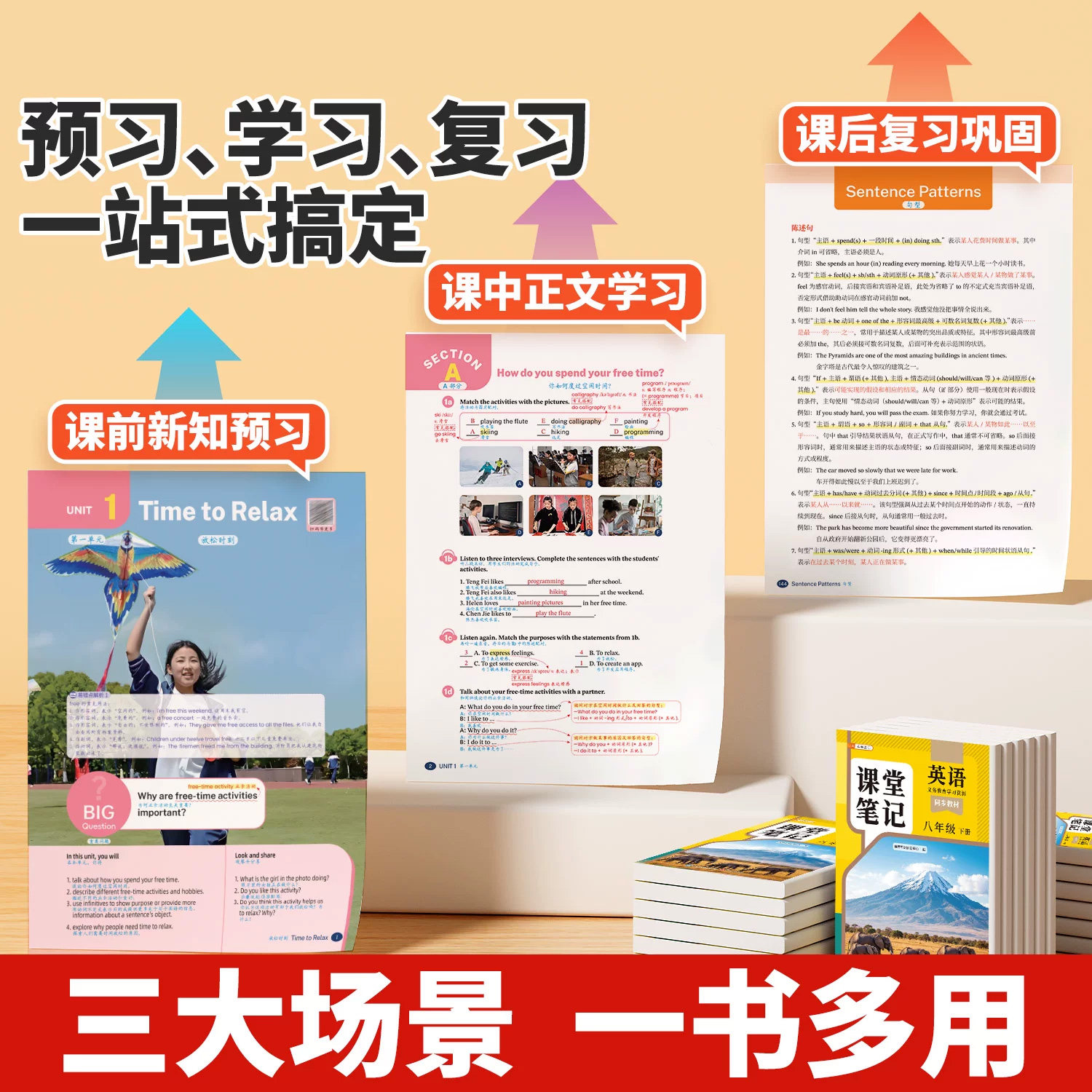 2026春季新版英语课堂笔记八年级下册英语新教材上册人教版外研版译林全套初二初中同步课本中学教材全解解读预习随堂笔记教辅资料