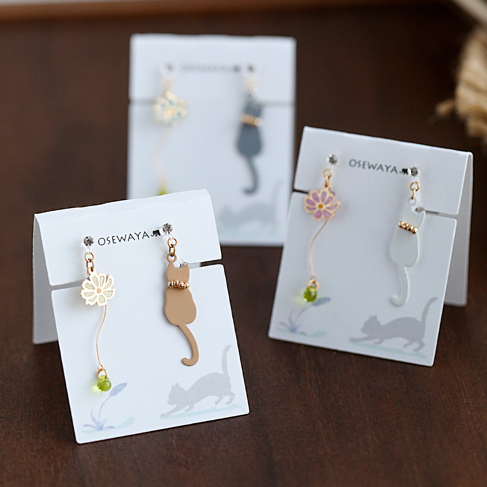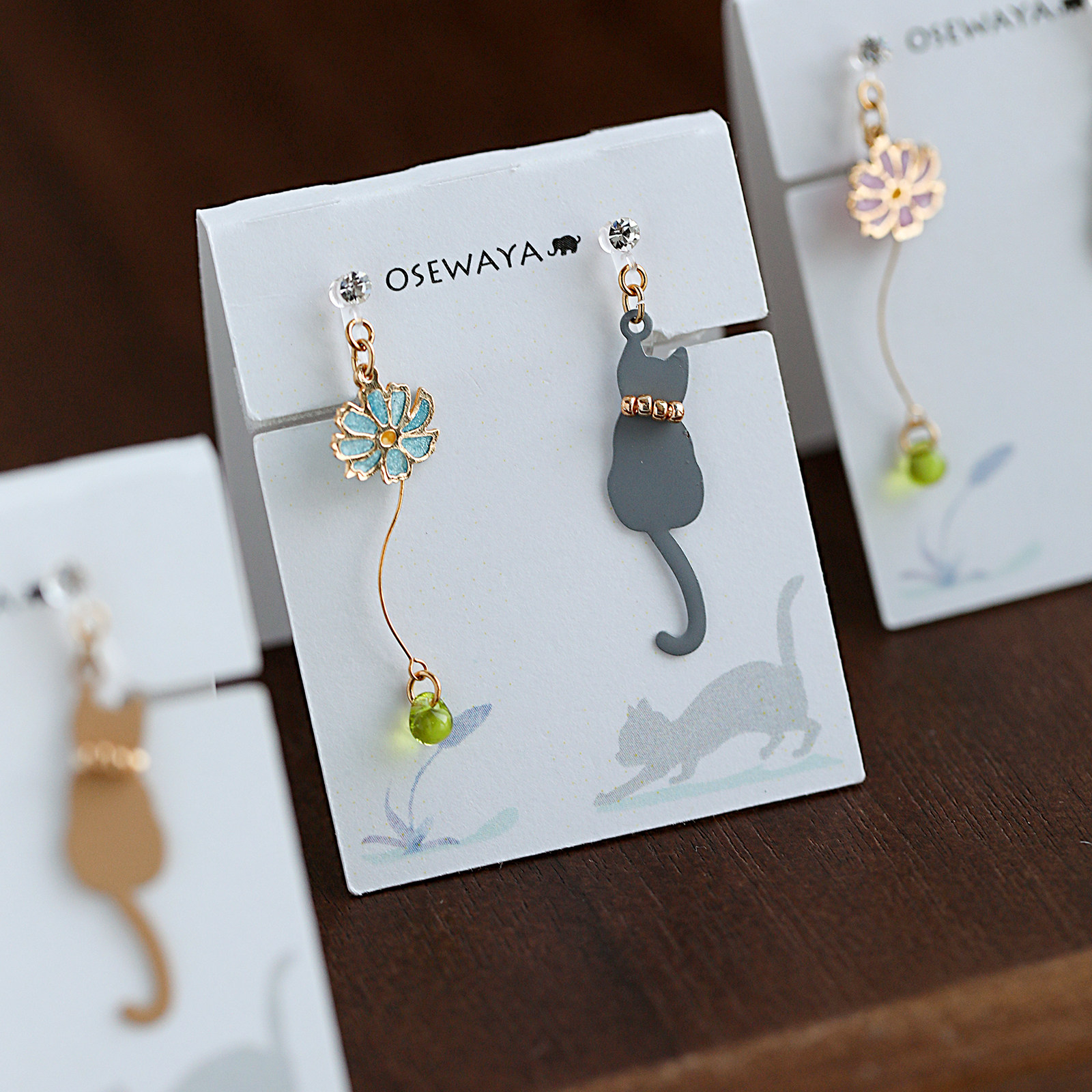 OSEWAYA耳夹女不对称猫咪花朵轻奢ins风耳饰长款耳坠日韩感耳钉