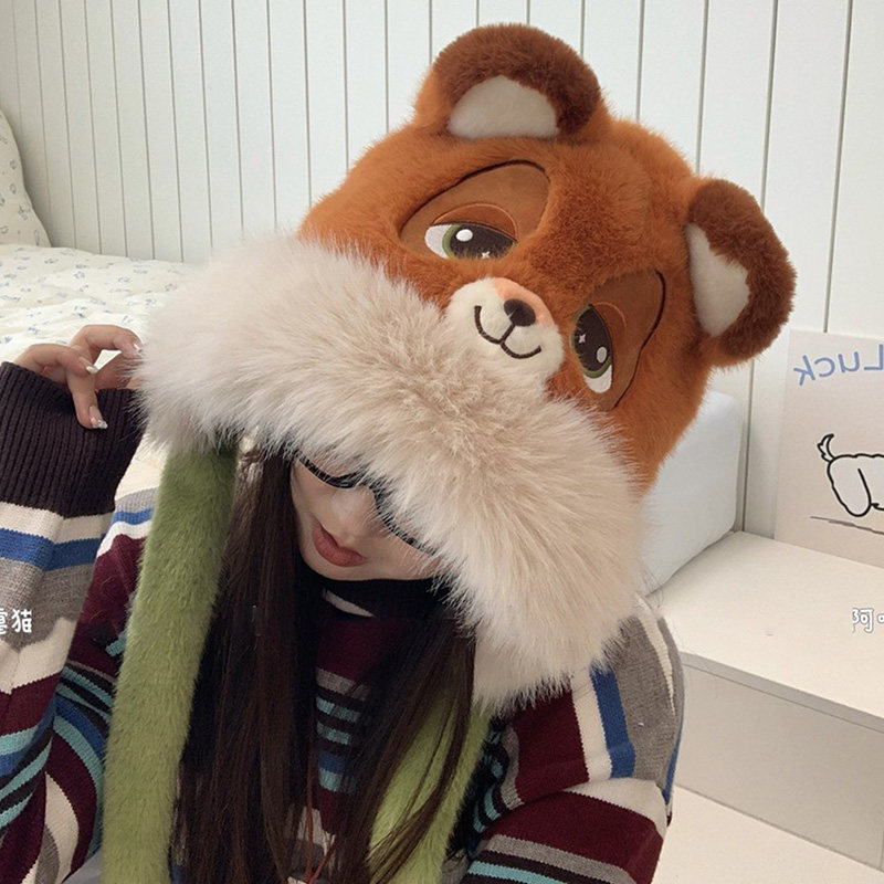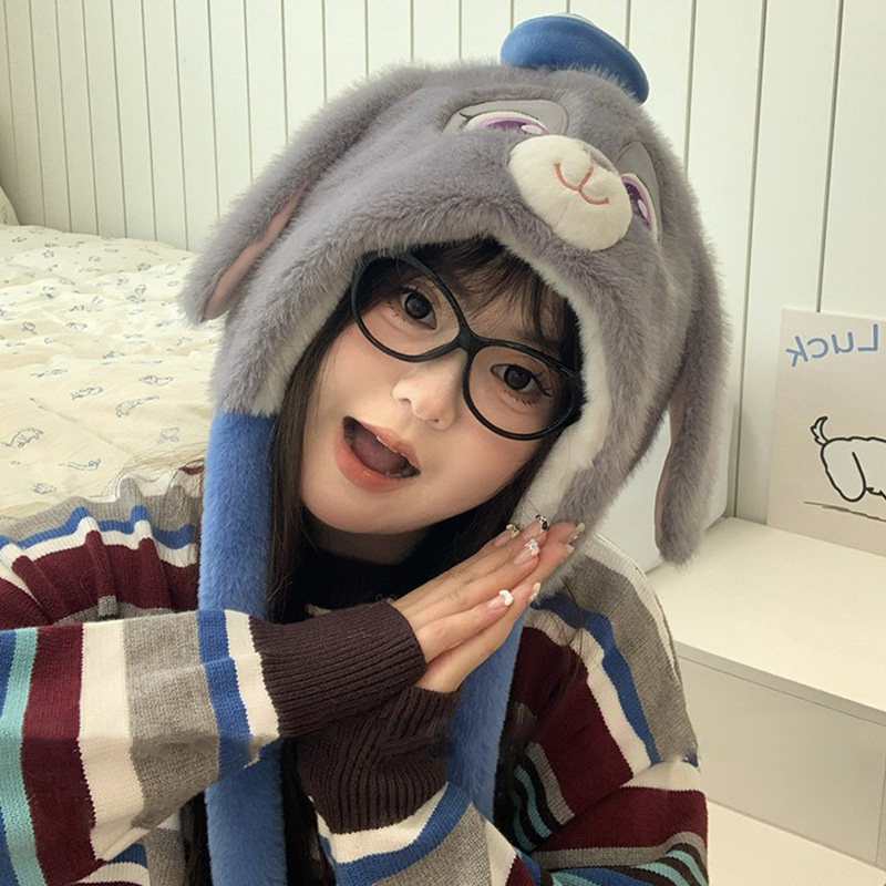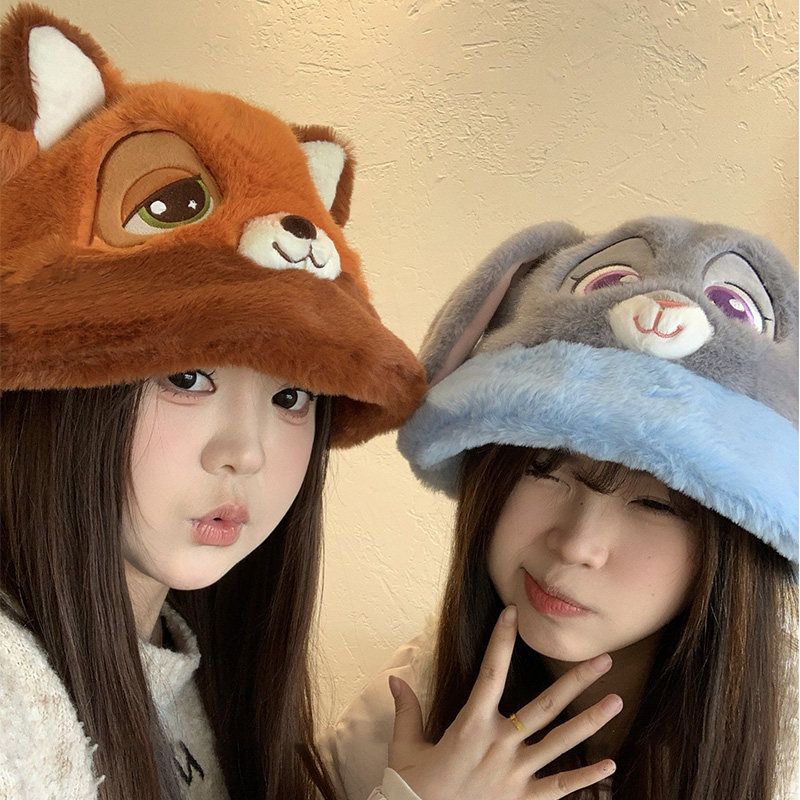 迪士尼正版尼克狐捏捏耳朵会动毛绒帽子女冬季加厚保暖护耳雷锋帽
