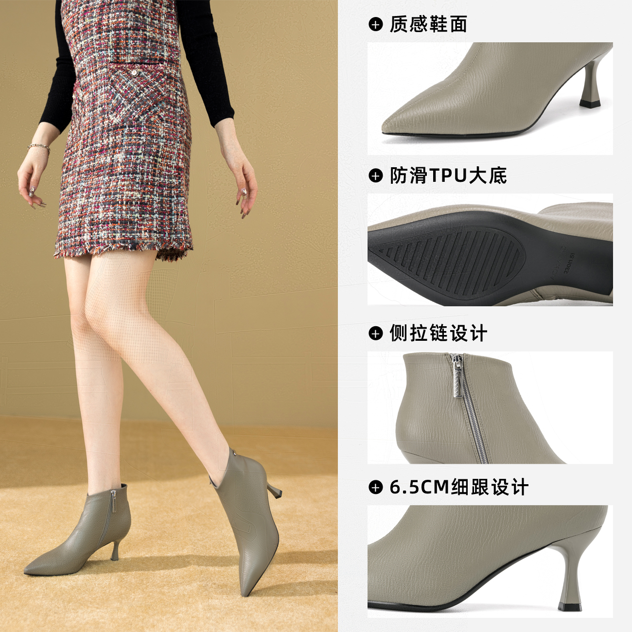 奥康女鞋 冬季新款尖头细高跟透气短靴女士靴子简约时尚气质优雅