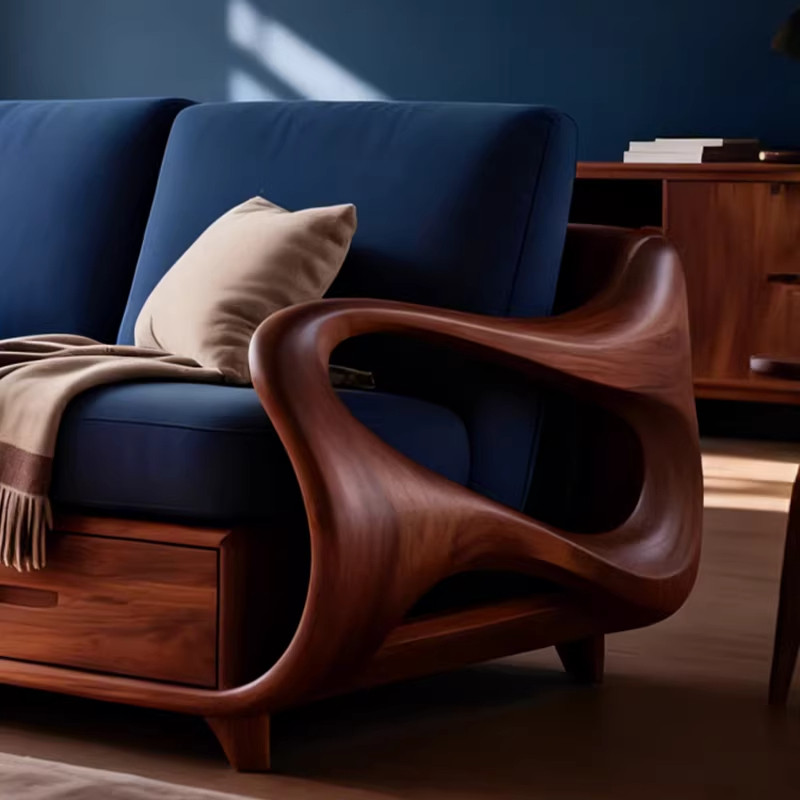 新中式实木沙发2026新款高端黑胡桃木设计款大户型客厅直排沙发