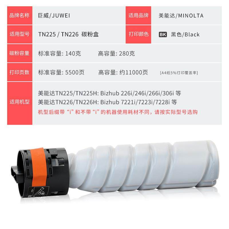 适用柯尼卡美能达266i粉盒TN225 Bizhub 226i 246i 306i碳粉TN226