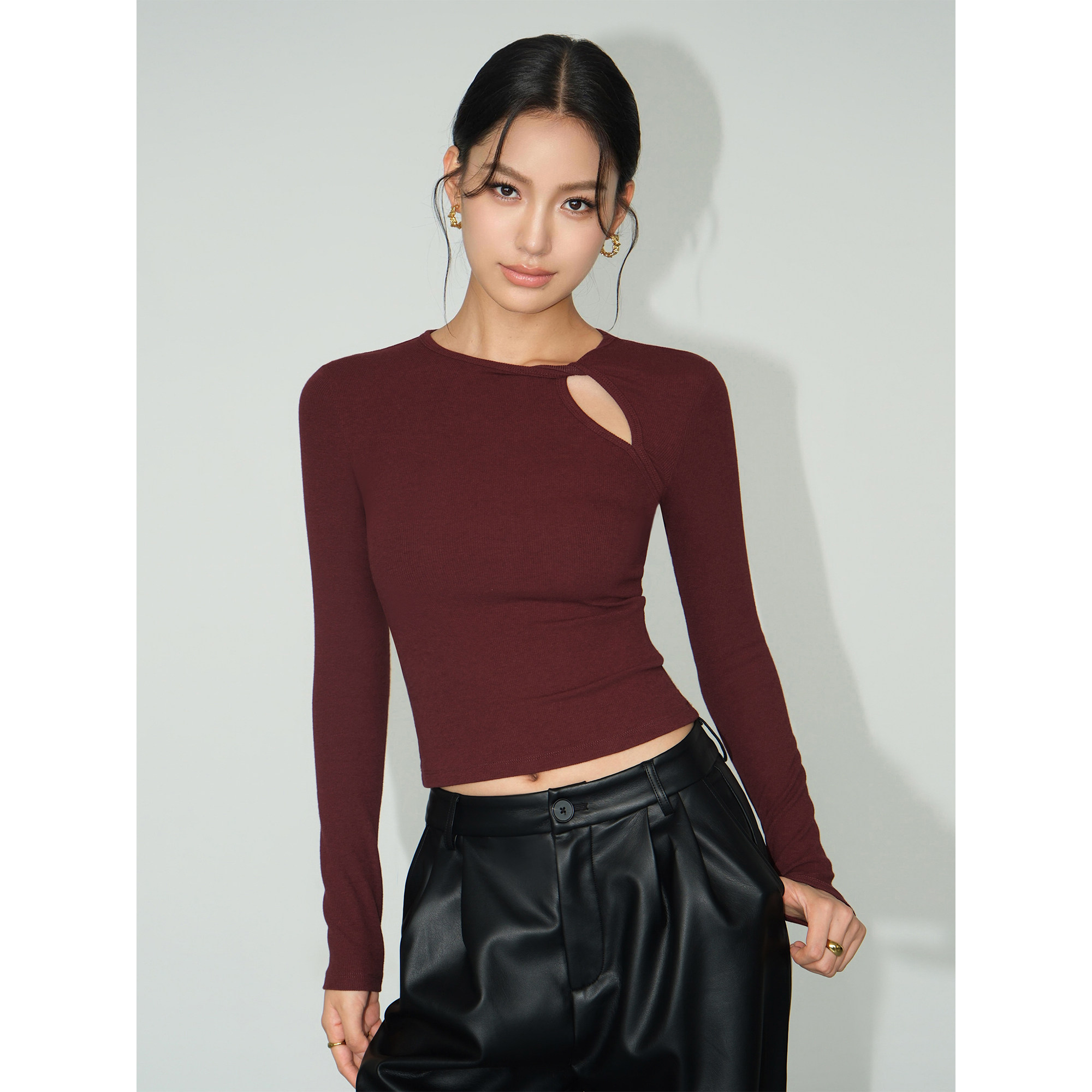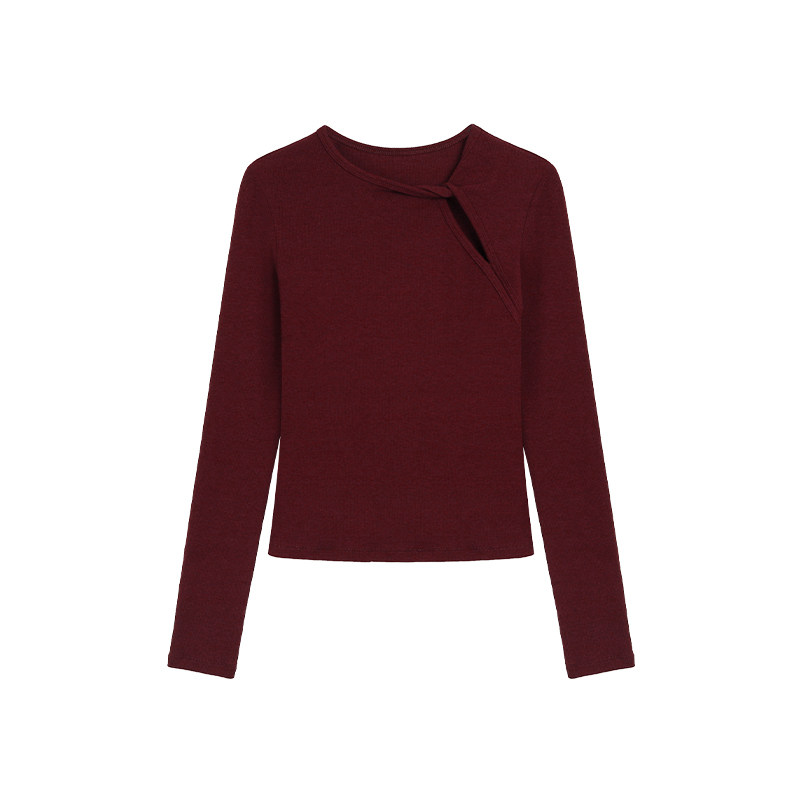 NEVA HU镂空设计感修身打底衫女春秋针织衫气质修身长袖t恤上衣