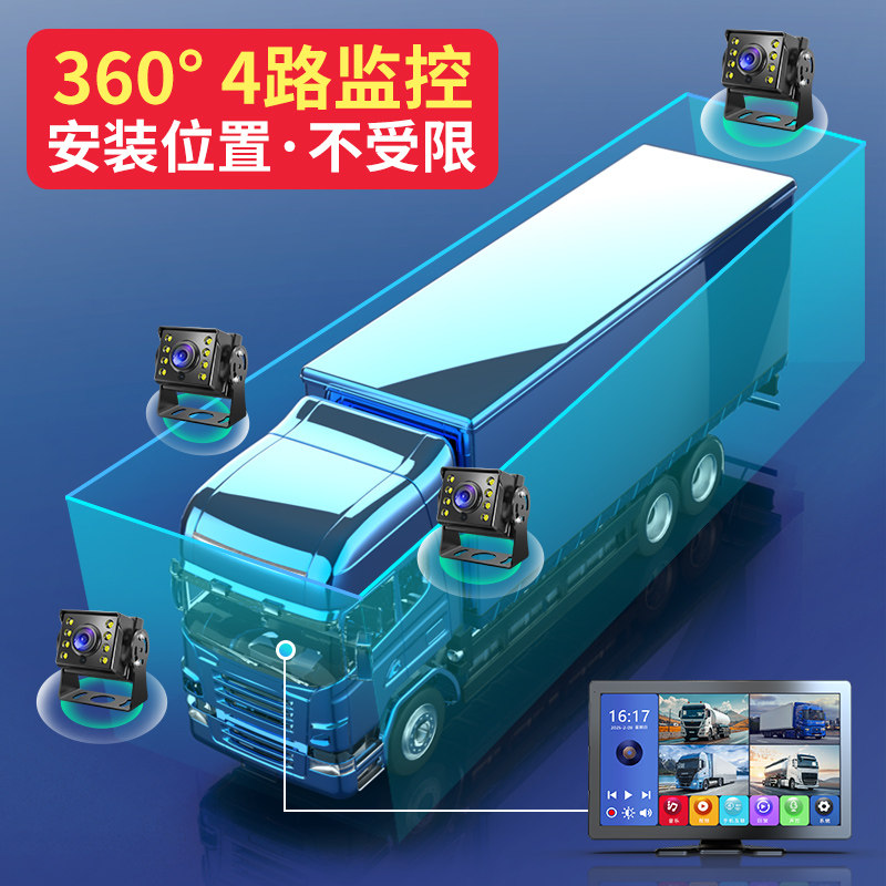 货车行车记录仪四路监控高清夜视360度全景24V专用一体机倒车影像
