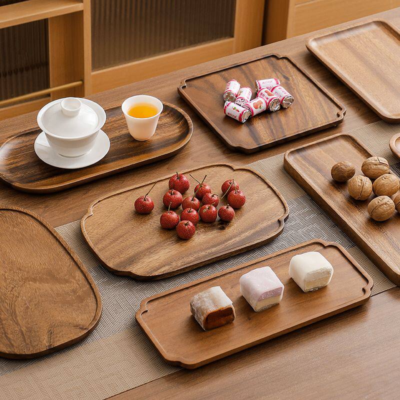 胡桃木实木中式披萨托盘厨房餐具高档餐盘酒店家用简约长方形果盘