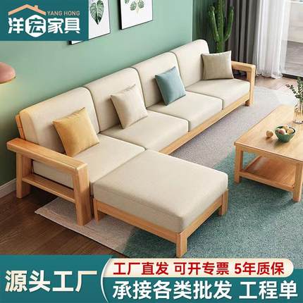 实木沙发组合小户型客厅沙发现代简约家用转角北欧原木风布艺沙发