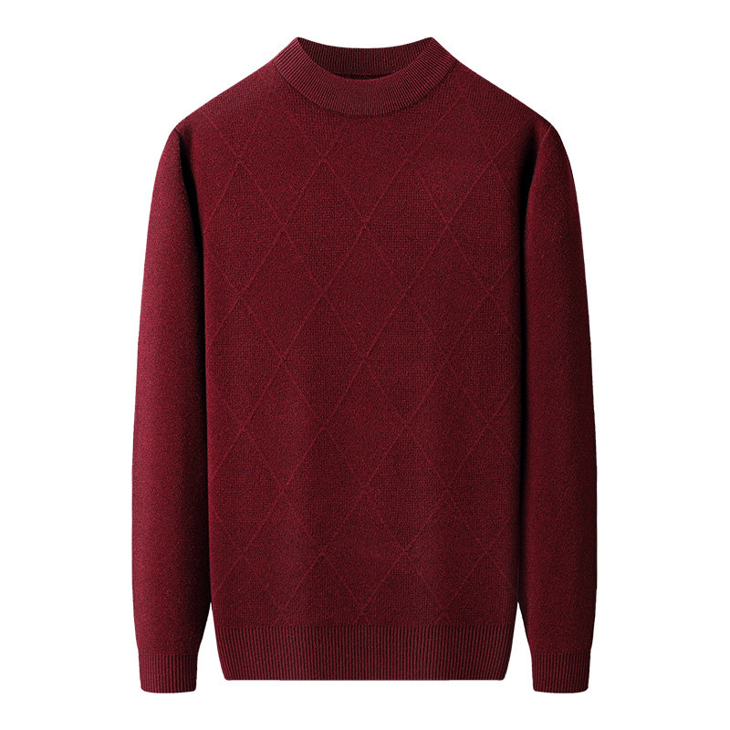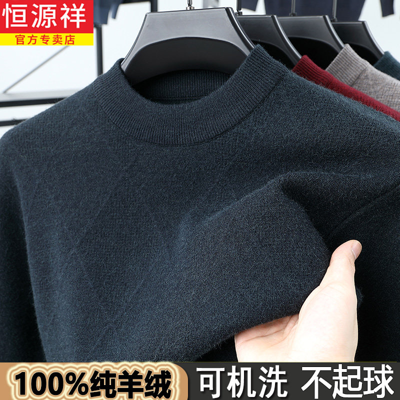 恒源祥100%纯羊绒衫男加厚毛衣爸爸本命年红色半高领羊毛衫抗起球