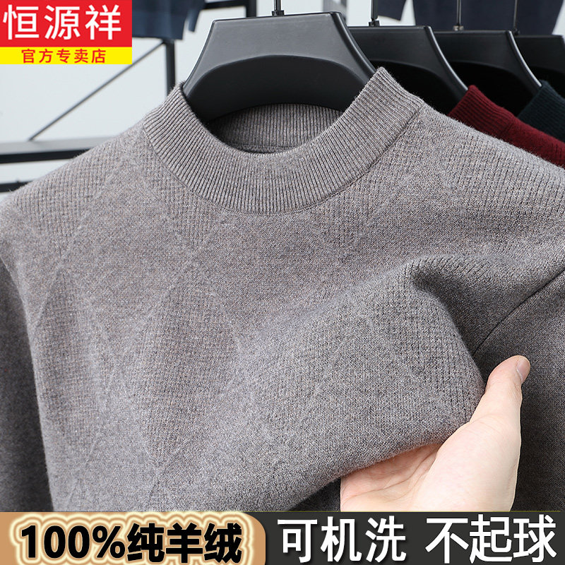 可机洗不起球!恒源祥纯羊绒衫男